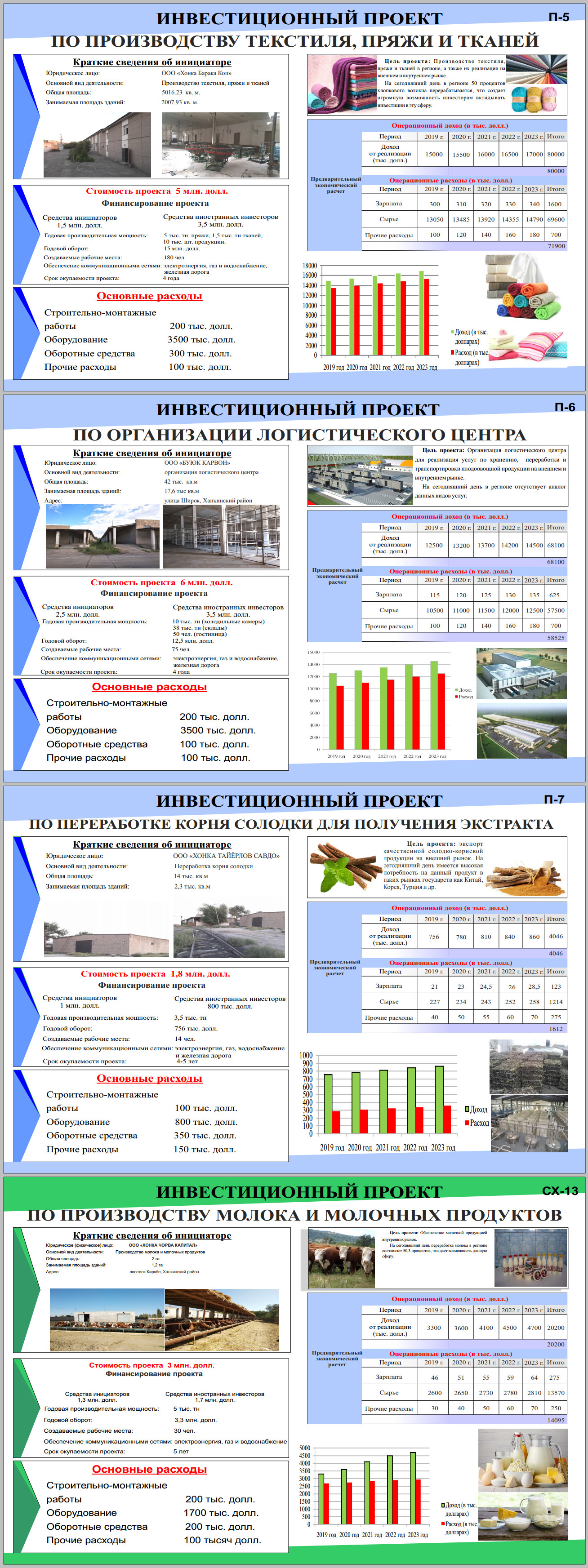 Хоразм вилоятида амалга оширилиши режалаштирилган инвестицион лойиҳалар