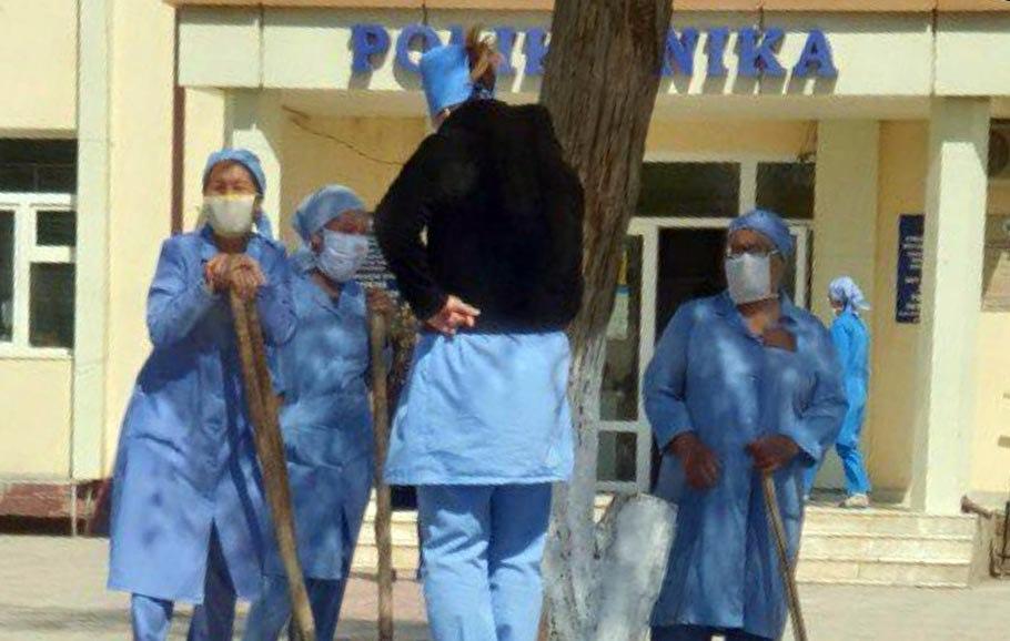 Ижтимоий тармоқларда “Тиббиёт ходимлари кўчада лопатка, кетмон билан иш қилдирилмоқда. Касаллика қарши курашнинг янги усулими бу?”, деган хабар тарқалди.