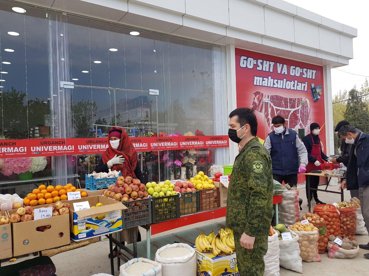 Хусусан, карантин даврида Хоразм вилоятининг барча чекка худудларида 350 дан ортиқ кўчма савдо ярмаркалари, турғун савдо дўконлари ўз фаолиятини бошлади. Эзгу ниятлар билан марказий деҳқон бозоридан озиқ-овқат ва қишлоқ хўжалиги махсулотлари билан тўлдирилган автодўконлар Урганч тумани маҳаллаларига ҳам кириб борди. Урганч туманидаги мавжуд 58 та маҳаллаларда 197 минг нафардан ортиқ аҳоли истиқомат қилмоқда. Туманда ташкил этилган ярмарка расталарини тўлдириб турган гўшт, картошка, пиёз, тухум, ёғ, помидор, бодринг каби бирламчи истеъмолпоб махсулотлар арзонлаштирилган нархларда етказиб берилди. Хоразм вилоят прокуратураси ва Бош прокуратура ҳузуридаги Департаментнинг вилоят бошқармаси, унинг ҳудудий бўлимлари ҳамда туман ҳокимлиги томонидан кўчма савдо ярмаркаларида барча турдаги озиқ-овқат маҳсулотларининг таъминоти ва захирасига, уларнинг сифати ва нархлар барқарорлигига алохида эътибор қаратилмокда.