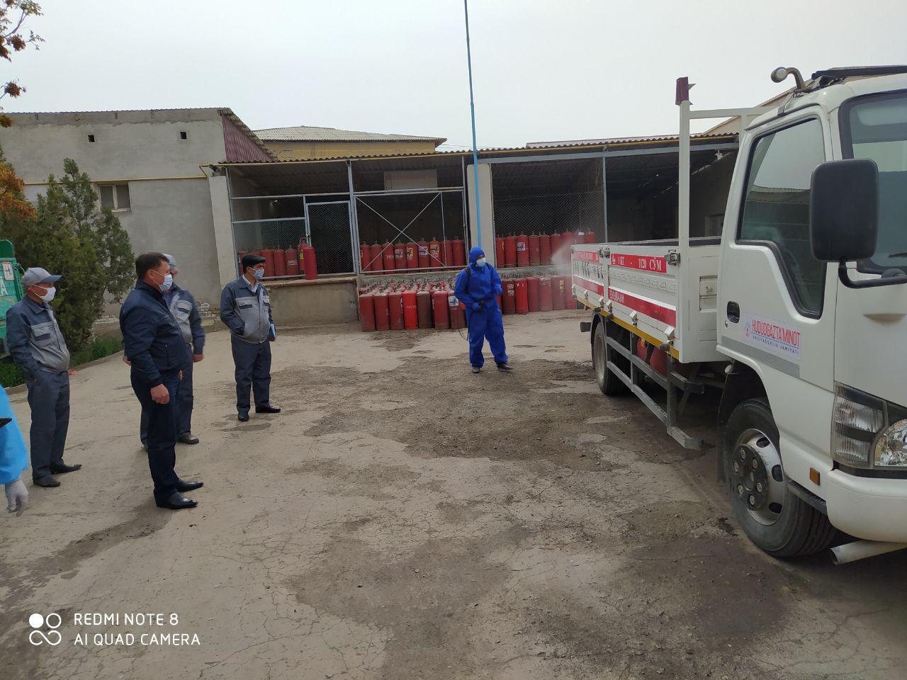 Албатта, “Ҳудудгаз Хоразм”масъулияти чекланган жамияти ва унинг тасарруфидаги шаҳар ва туман газ филиалларида ишчи-ходимлар учун коронавирус карантини даврида санитар-гигиеник жиҳатдан қулай иш шароитини яратиб беришга ҳам алоҳида эътибор қаратилмоқда. Маъмурий бинолар, хизмат машиналари ва суюлтирилган газ тарқатувчи машиналар мунтазам дезинфекция қилинмоқда. Бинолардаги қўл ювиш жойларида совун ва қоғоз салфеткалар муҳайё, барча эшиклар тутқичларига дока ўралган бўлиб, ҳар куни бир-неча бор дезинфекция эритмаси билан намлаб турилади, ишчи-ходимлар бепул тиббий ниқоб ва қўлқоп, нам салфеткалар, антисептик воситалар билан таъминланган.