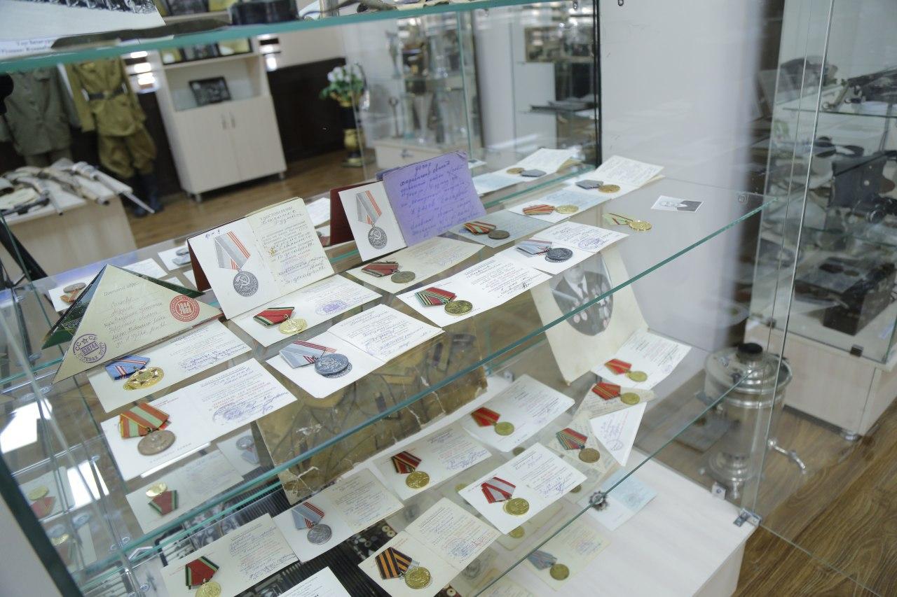 – Иккинчи жаҳон урушида фашизм устидан қозонилган ғалабанинг 75 йиллик байрамига бағишлаб вилоятимиз ва унинг аҳолиси қўшган улушини жамлаш, музей ташкил этишга киришдик, – дейди мудофаа ишлари бошқармаси бўлим бошлиғи подполковник Камолиддин Шарипов. – Бошида бу музейни қандай ва нима билан тўлдирамиз, деган ўринли савол бизни қийнарди. Шаҳар ва туман мудофаа ишлари бўлимлари томонидан аҳоли ўртасида музей ташкил этилиши ҳақида хабар тарқалгач, одамлар ота-боболарининг жасоратини тарихда мухрлаб қўйишни сўраб, ўзлари экспонатларни олиб кела бошлади. Шу тариқа музейимиз кундан-кунга янги экспонатлар билан бойиб келяпти. Бугунга келиб музей фондида 200 га яқин экспонат ва тарихий ҳужжат мавжуд. Шунингдек, Президентимиз ташаббуси билан Тошкентда бунёд этилаётган Ғалаба боғидаги Шон-шараф музейи фонди учун вилоятимиздан 100 дан ошиқ экспонат тақдим этилди.