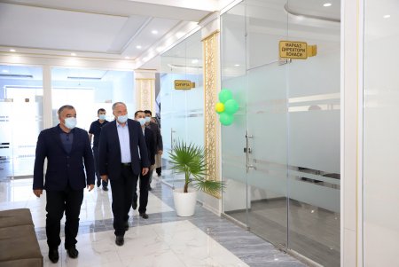 Бино очилишида Хоразм вилояти ҳокими Фарход Эрманов қатнашиб, янги бино фаолияти билан танишди ҳамда аҳолига яратилган қулайликлар бўйича қўшимча тавсияларини берди.