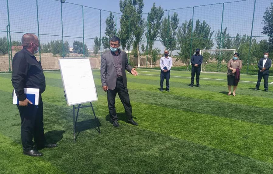 Бугун Боғот тумани ҳокими Ойбек Холбоев тумандаги 25-сон мактабнинг сунъий қопламали(газон) майдонида мактабларда қурилиш ва таъмирлаш ишлари бўйича туман ХТБ мудири Т.Мирзаев билан биргаликда семинар йиғилишини ўтказди.Семинарда имкониятдан келиб чиқиб, спорт ўйинлари учун газонлар барпо қилиш, мактаб ҳожатхоналарини таъмирлаш юзасидан қилинаётган ва режалаштирилган ишлар таҳлил қилинди.Бугунги кунга қадар 5та мактабда газон қурилган,7та мактаб ҳудудида олдиндан бор, 19та мактабда қурилиш ишлари бошланганлиги айтилди.Ҳоким ёрдами билан ёмон ҳолатдаги 8та мактабда янги ҳожатхона қурилмоқда. Бугунги кунда тумандаги барча мактабларда 2020-2021 янги ўқув йилига тайёгарлик бошлаб юборилди.