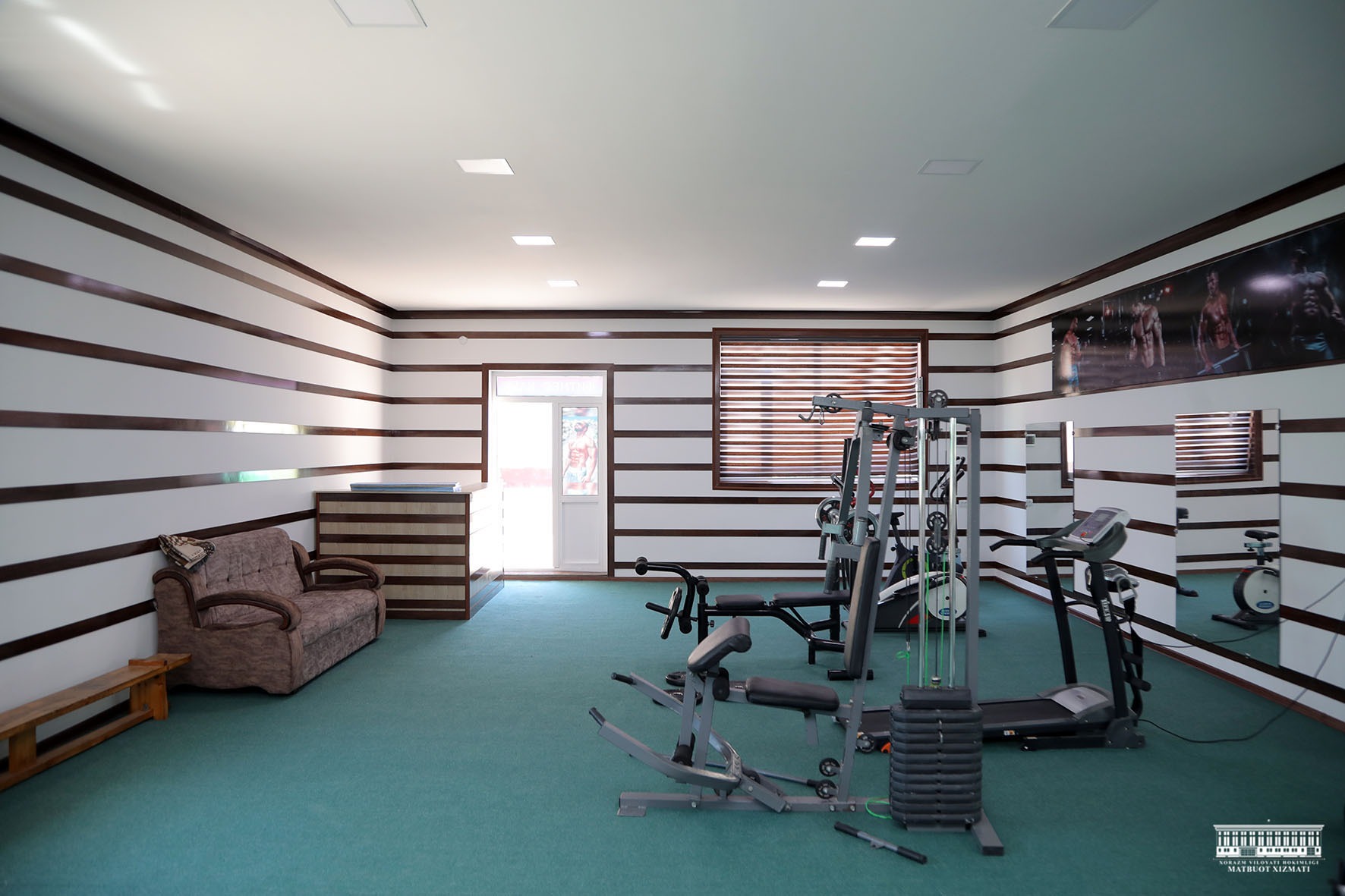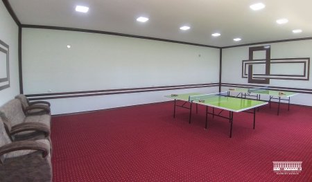 Янгидан барпо қилинган сунъий қопламали спорт майдончаси ва стол тенниси ҳамда фитнес машғулотлари хонасида барча шароитлар яратилган бўлиб, замон талабига мос кийиниш ва ювиниш хоналари ҳамда алоҳида хожатхона мавжуд.