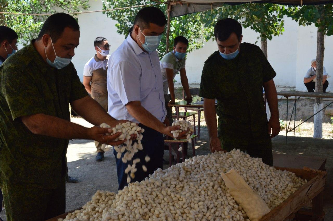 Гурлан туманида қишлоқ хўжалигининг илк ҳосили бўлган пиллани йиғиб олиш ишлари бошланди