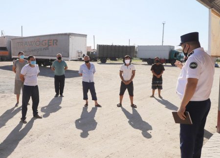 Ўзбекистон Республикасига коронавируснинг кириб келиши ва тарқалишининг олдини олиш мақсадида вилоят Транспорт бошқармаси инспекторлари ҳамда маъсул ходимлари билан бирганликда вилоятга кириб келоётган халқаро юк ташувларни амалга ошираётган автотранспорт воситалари ҳайдовчиларига карантин даврида санитария-гигиена талабларига катъий риоя қилиниши юзасидан, Урганч туманидаги Чолиш блок постида ва “Урганч Оригинал Газ” хусусий корхонасига тегишли бўлган юк автотранспорт воситаларини вақтинча кутиб туриш жойидага хайдовчиларга тарқатма материаллар тарқатилиб тушунтириш ишлари олиб борилмоқда.