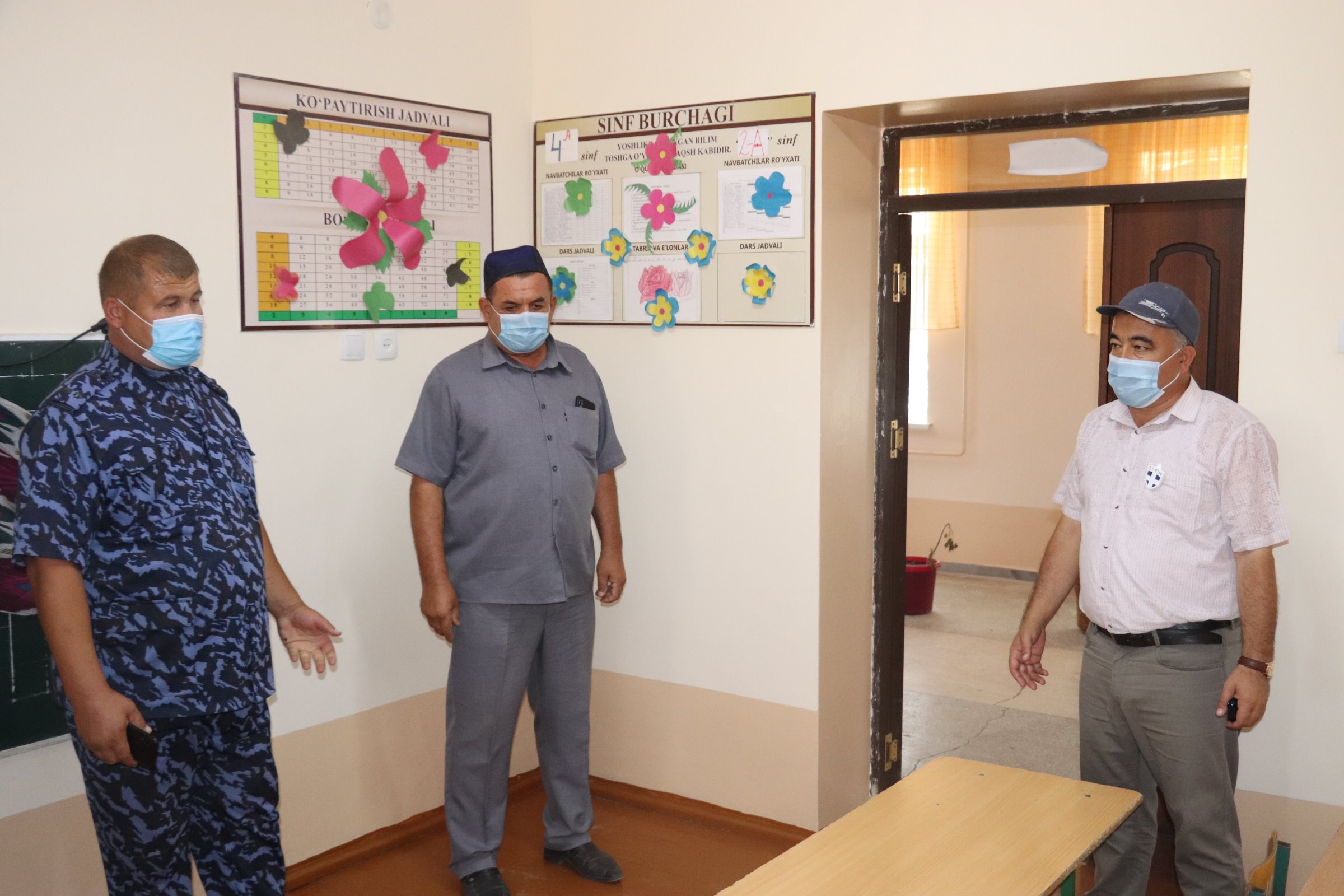 Туман ҳокими О Матякубов ҳамда сектор раҳбарлари тумандаги умумтаълим мактабларнинг янги ўқув йилига, ҳамда куз-қиш мавсумига тайёргарлик ҳолати бўйича амалга оширилган ишларни кўздан кечирдилар. Мактабларни теварак атрофлари озодалигига алоҳида эътибор қаратилди.