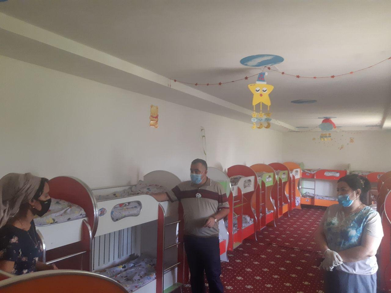 Туман ҳокими О.Матякубов, тумандаги 1-сонли давлат МТТ, Полосултон мфй даги оилавий боғчаларни мавсумга тайёргарлик, куз-қиш мавсумига оид қилинган ва амалга оширилаётган ишларни бориши, ҳудуднинг ободонлаштирилганлиги ҳамда "Гандимиён ниҳоллари" ДХШ асосида ,ҳамда инвестиция дастури асосида барпо этилаётган 9-сонли МТТ биноларини кўздан кечирди. Биноларни ҳар бир хонасини кўздан кечириб, Республика маҳсус комиссиясини рухсати билан, карантин қоидаларига тўла риоя қилиш, болаларни ётоқ ва овқатланиш, машғулот стол-стулларини алоҳидалаш, кириш эшиклари олдида дезинфекция йўлаклари ташкил қилиш, ҳамда болаларни тана ҳароратларини ўлчаш анжомларини ташкил қилиш борасида ўз кўрсатмаларини бериб ўтди.
