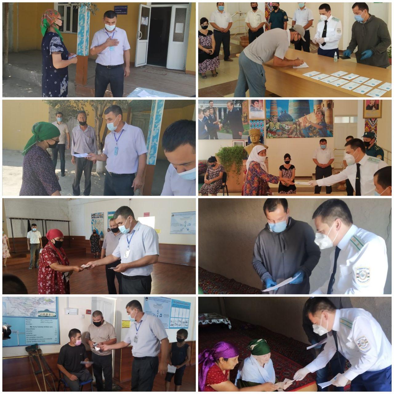 Боғот туманида Ўзбекистон Республикаси Президентининг жорий йил 30 июлдаги "Коронавирус пандемияси даврида ижтимоий ҳимояга ва ёрдамга муҳтож аҳоли қатламини моддий қўллаб қувватлашга доир қўшимча чора тадбирлари" тўғрисидаги фармони асосида моддий ёрдам ва кўмакка муҳтож фуқароларнинг ҳар бирига 220 минг сўмдан нақд пул кўринишидаги бир марталик моддий ёрдам пуллари тарқатилмоқда.