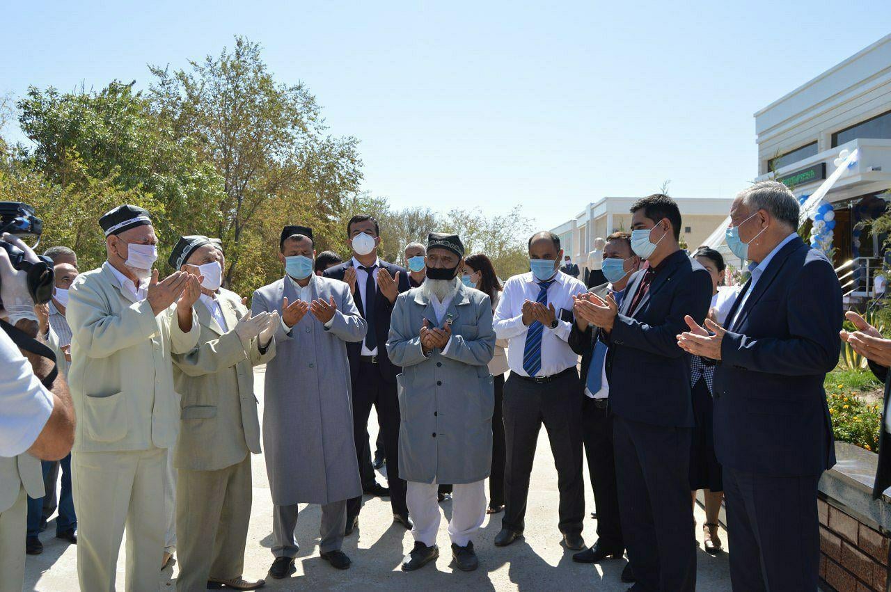 Янги бино очилишига бағишланган тадбир карнай-сурнай садолари янграши ҳамда фахрий отахонлардан оқ фотиҳа олиш билан бошланди.