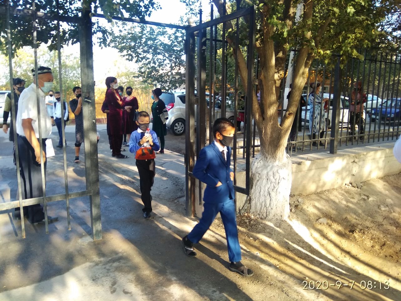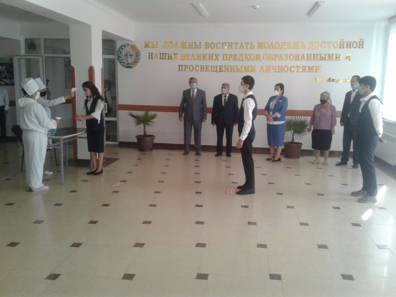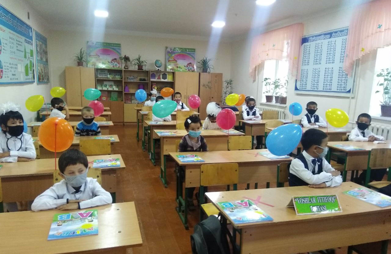 Мактабда ўқиш истагини билдирган ўқувчилар эрталаб, эшик олдида ЧҚТБ раҳбари, ҳамшира ва сэс ходими иштирокида кутиб олинди. Ҳар бир ўқувчининг ҳарорати ўлчаниб, антисептик воситалар ёрдамида дизинфекцияланган ҳолда ичкарига киритилди. Махсус чизилган йўлаклар орқали ҳаракатланаётган ўқувчиларнинг руҳиятини кўтариш мақсадида мактаб ҳовлисида " Жонажон мактабим" қўшиғи янграб турди.