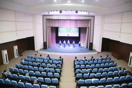 Бугун шаҳримиздаги кўркам «Ёшлар маркази»да Урганч шаҳар ҳокимлиги ҳамда Республика Маънавият ва маърифат маркази Урганч шаҳар бўлинмаси ҳамкорлигида «Қадринг баланд бўлсин, она тилим! » номли адабий-бадиий кеча ташкил этилди.