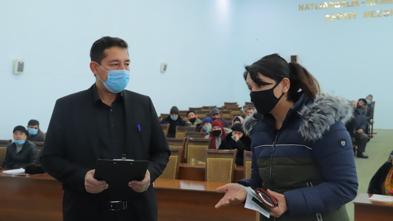 Қабулда уй-жой билан таъминлаш, кредит ажратиш, моддий ёрдам тайинлаш, томорқа ерларини қайтариб олиш сингари масалалар юзасидан қилинган мурожаатларга қонун доирасида тушунтиришлар берилди. Муддат талаб қиладиган 23 та мурожаат юзасидан тегишли ташкилот раҳбарларига топшириқлар берилиб, ижроси қатъий назоратга олинди. Қабулда 20 дан ортиқ идора-ташкилотлар иштирок этди ва уларга туман аҳолисини қийнаб келаётган масалаларни ҳал қилиш ва олдини олиш бўйича туман ҳокими Ф.Шарипов томонидан топшириқлар берилди.