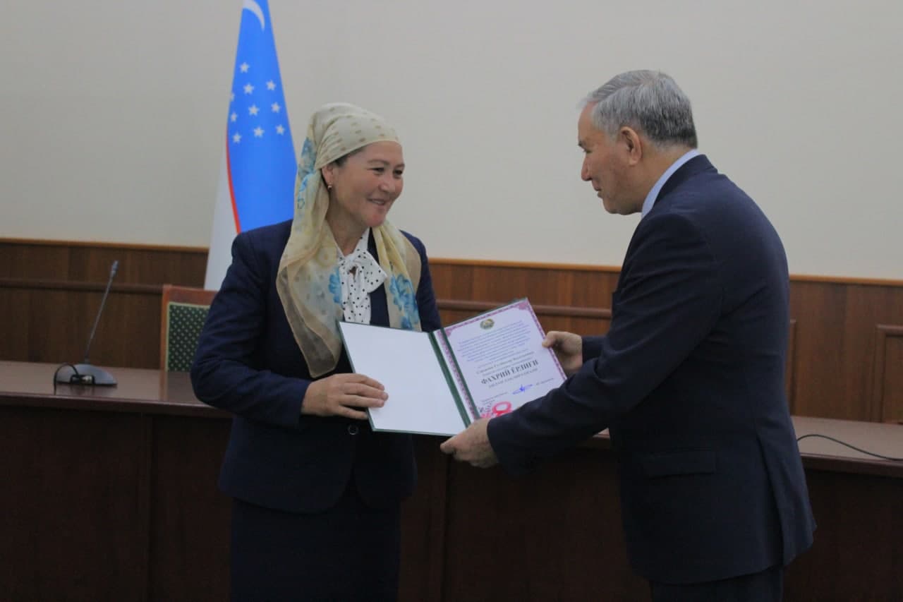 Ўзбекистон Республикаси Президентининг 2021 йил 4 мартдаги “8 март – Халқаро хотин-қизлар куни билан мукофотлаш тўғрисида”ги фармонига мувофиқ, ислоҳотларни амалга ошириш ва ижтимоий ҳаётдаги фаол иштироки учун вилоятимиздан бир гуруҳ хотин-қизлар давлатимизнинг орден ва медалларига сазовор бўлди.