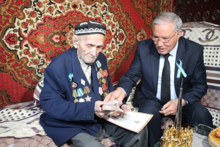 Вилоят ҳокими Ф.Эрманов кенг жамоатчилик вакиллари билан Урганч шаҳрида истиқомат қилувчи уруш қатнашчиси Жаббор бобо Қаландаров хонадонида бўлиб, Хотира ва Қадрлаш куни ҳамда Иккинчи жаҳон урушида қозонилган ғалабанинг 76 йиллиги муносабати билан давлатимиз раҳбарининг табригини ўқиб эшиттирди, 12 миллион сўм пул мукофоти ҳамда қимматбаҳо совғаларни тантанали равишда топширди.