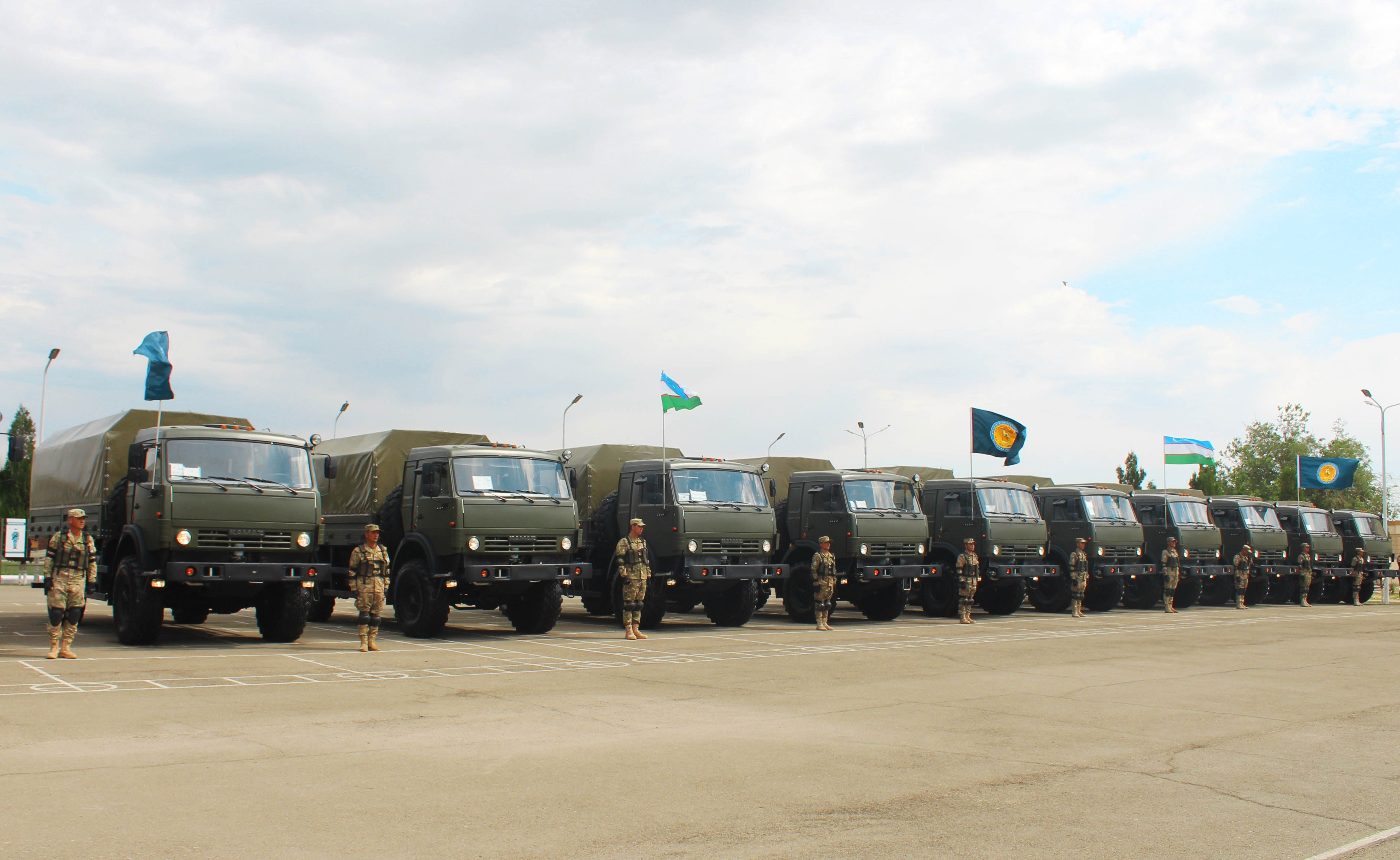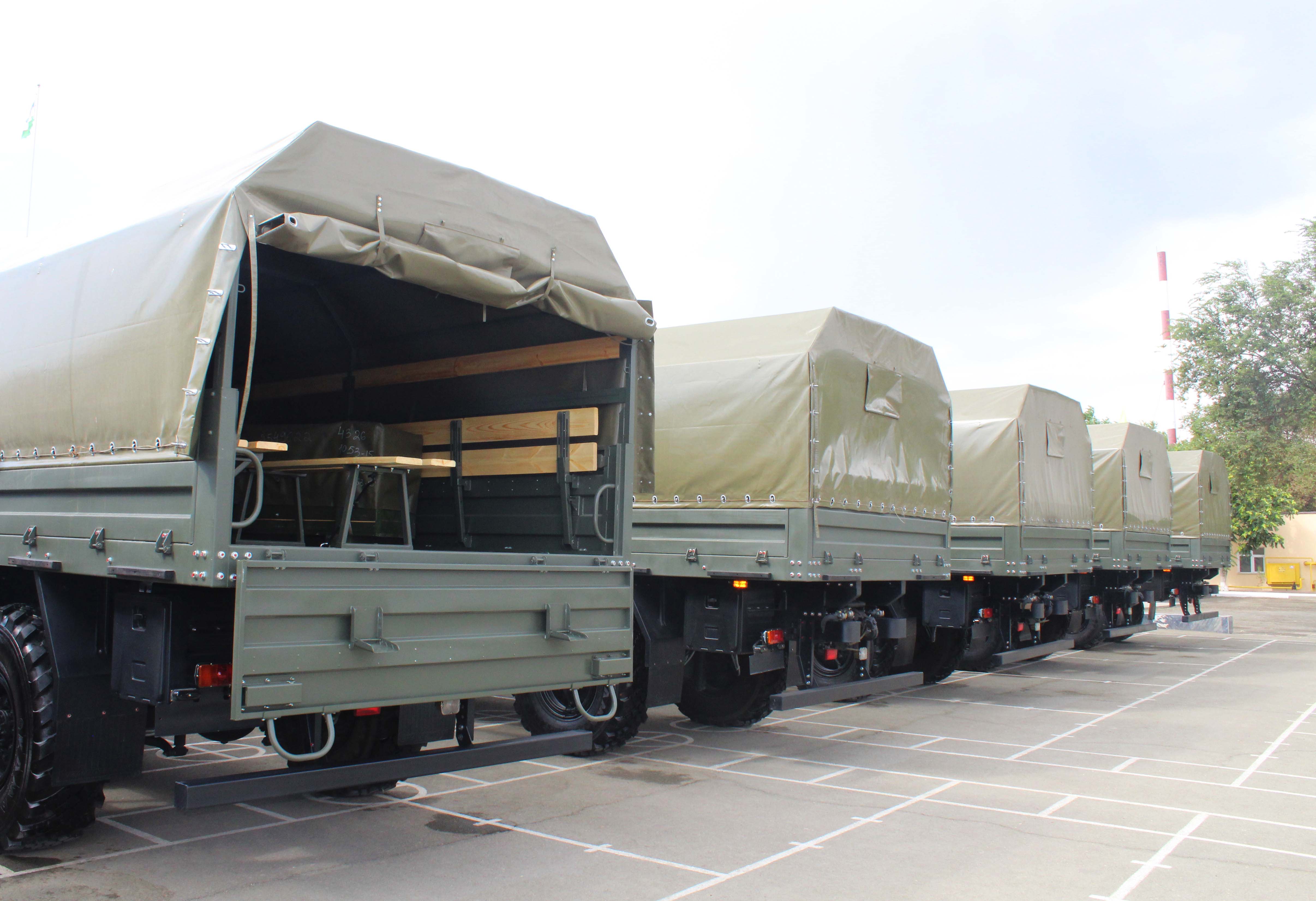 Бугун Урганч шаҳрида жойлашган ҳарбий қисмлардан бирига 12 дона “Камаз-4326” русумли замонавий ҳарбий техникалар топширилди.