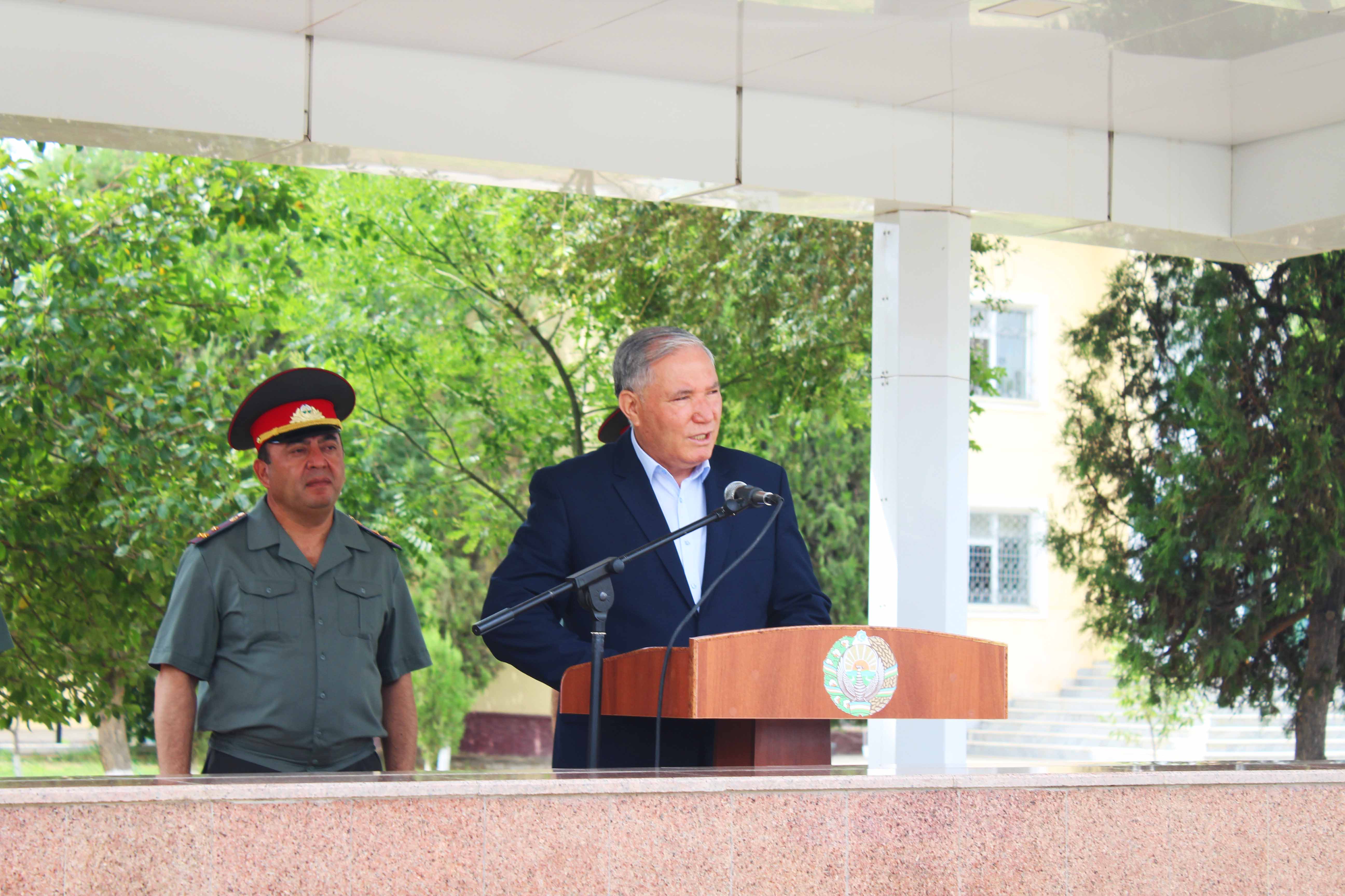 Шу муносабат билан ўтказилган тадбирда вилоят ҳокими, ҳарбий –маъмурий сектор раҳбари Фарход Эрманов, Шимолий-ғарбий ҳарбий округи қўшинлари қўмондони, полковник Фарход Шерматов сўзга чиқиб, давлатимиз томонидан қўшинларнинг мудофаа қудрати, жанговар шайлиги ва моддий-техник базасини янада мустаҳкамлашга алоҳида эътибор қаратилаётганини таъкидладилар.