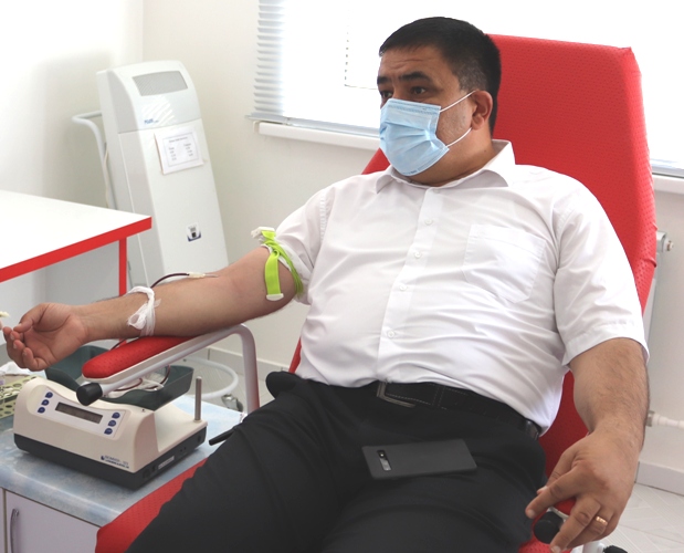 Бугун эрталабдан муассаса ҳар доимгидан-да гавжум. Хайрли ишга бош қўшиш истагидаги кўплаб юртдошларимиз қон топшириш учун ташриф буюрди. Вилоят ҳокими ўринбосари Санъат Салаев, вилоят соғлиқни сақлаш бошқармаси бошлиғи ва ўринбосарлари биринчилардан бўлиб беғараз қон топширди.