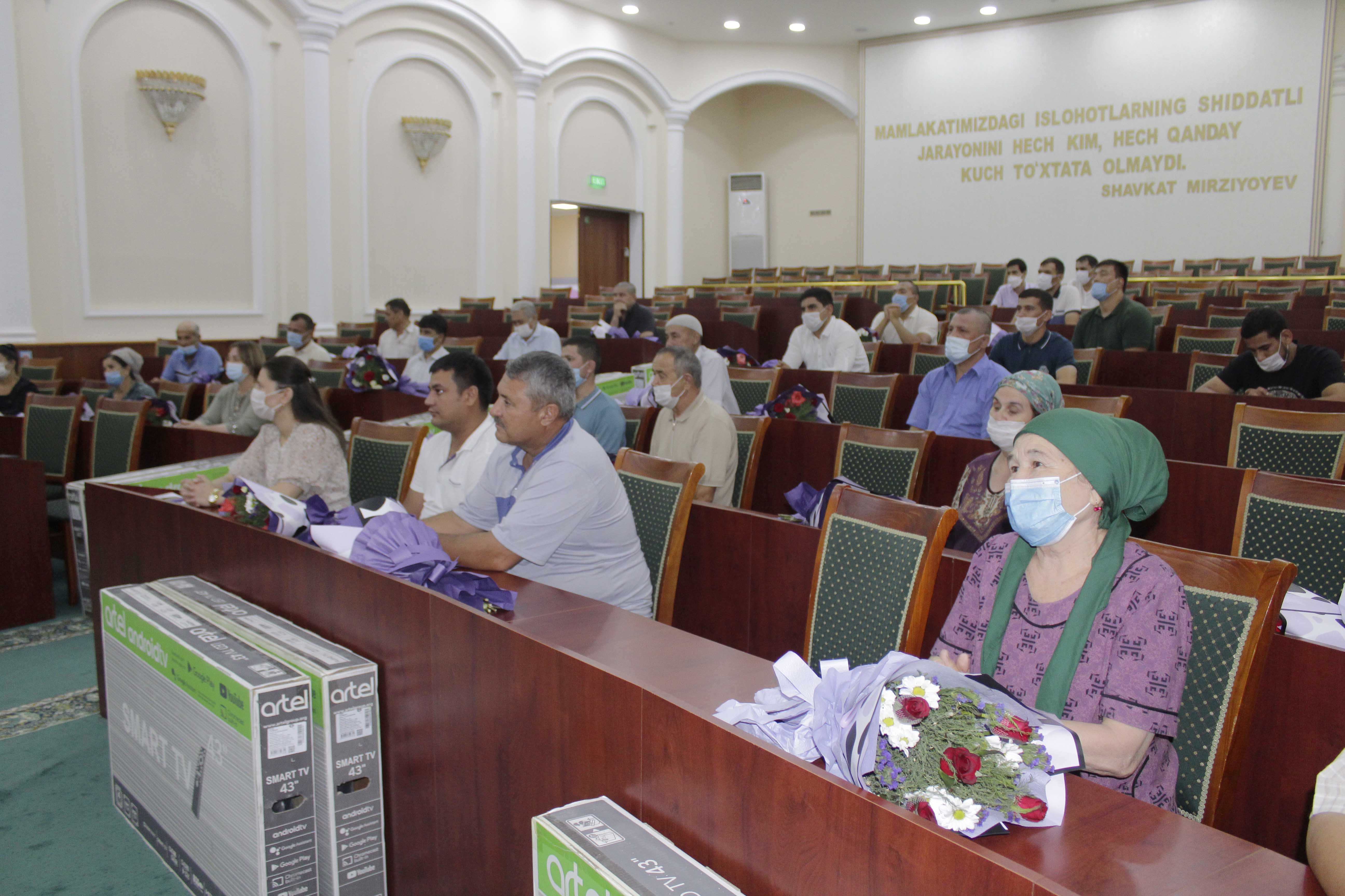Токио Олимпиадаси ўйинларига йўлланма олган дзюдочилар Гулноза Матниёзова, Фарангиз Ҳажиева, боксчи Дилшодбек Рўзметов, велоспортчи Муроджон Холмуродов, эркин курашчи Ғуломжон Абдуллаев, парадзюдочилар Севинч Салаева, Учқун Қуранбаев, Нафиса Шарипбаева, пауэрлифтинг бўйича Рўза Қўзиеванинг ота-оналари ва мураббийларига вилоят ҳокимлигининг совғалари топширилди.