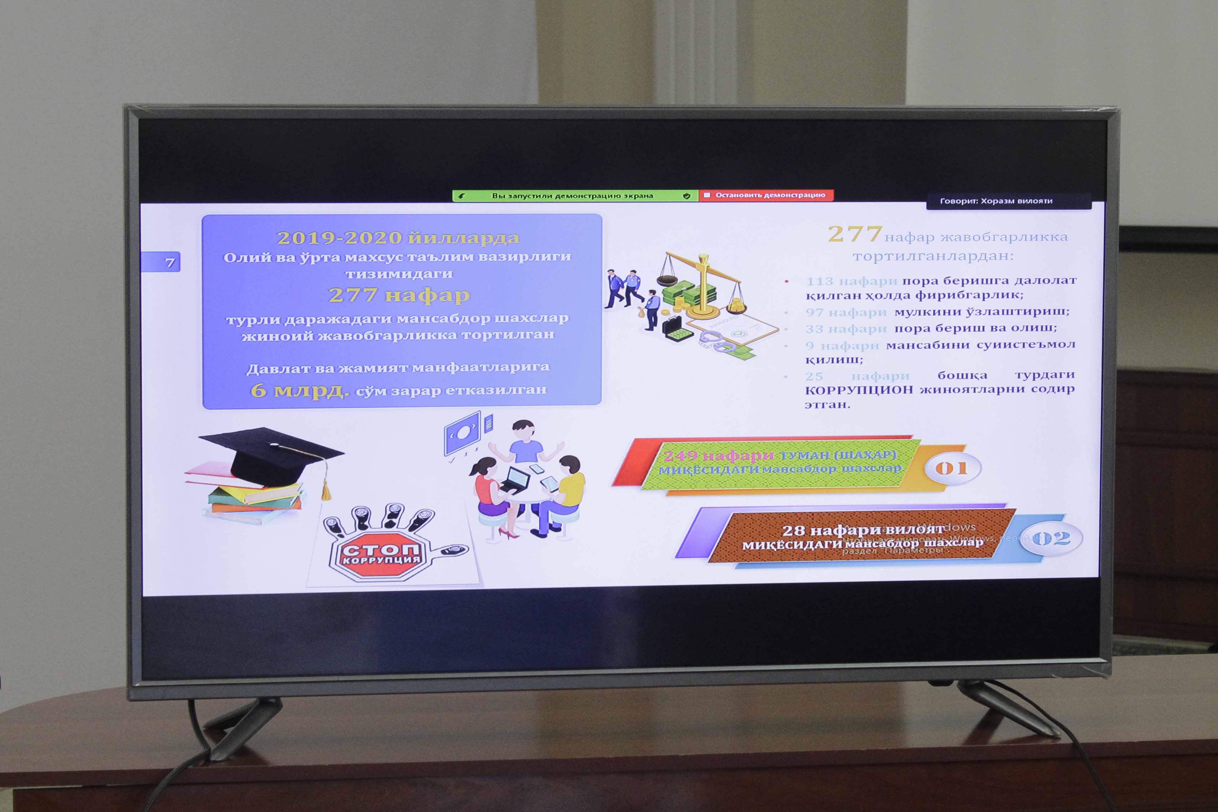 Маълумки, 2021 йил 16 июнда Ўзбекистон Республикаси Президентининг “Давлат органлари ва ташкилотларининг фаолияти очиқлигини таъминлаш, шунингдек, жамоатчилик назоратини самарали амалга оширишга доир қўшимча чора-тадбирлар тўғрисида”ги фармони қабул қилинган эди. Давлат органлари ва ташкилотлари фаолиятининг очиқлиги ва шаффофлигини, ахборот олиш эркинлигини таъминлаш орқали жамоатчилик назоратини такомиллаштириш, шунингдек, Ҳаракатлар стратегиясида белгиланган вазифаларни амалга ошириш мақсадида қабул қилинган мазкур фармон моҳиятини тушунтириш ва ижросини таъминлаш мақсадида Коррупцияга қарши курашиш агентлиги томонидан Урганч шаҳрида семинар ташкил этилди.