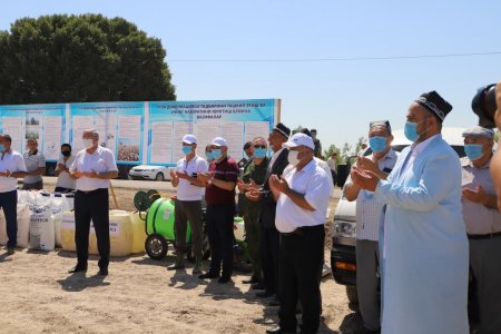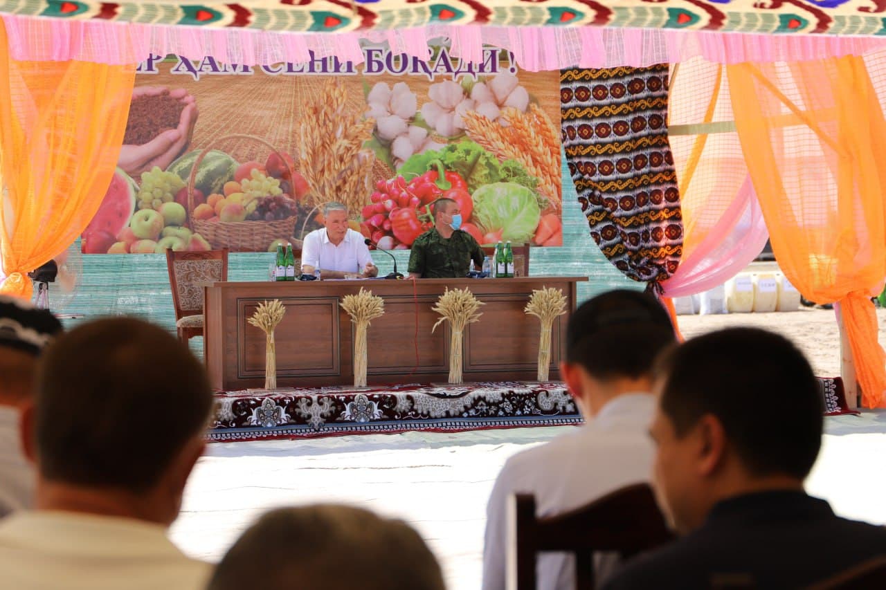 Тадбирда вилоят ҳокими Фарход Эрманов қатнашиб, бошоқли дон экинларини агротехнология талаблари асосида экиш ва ғўза дефолиациясини ўз вақтида сифатли ўтказиш бўйича масъул раҳбарларга тегишли топшириқлар берди.