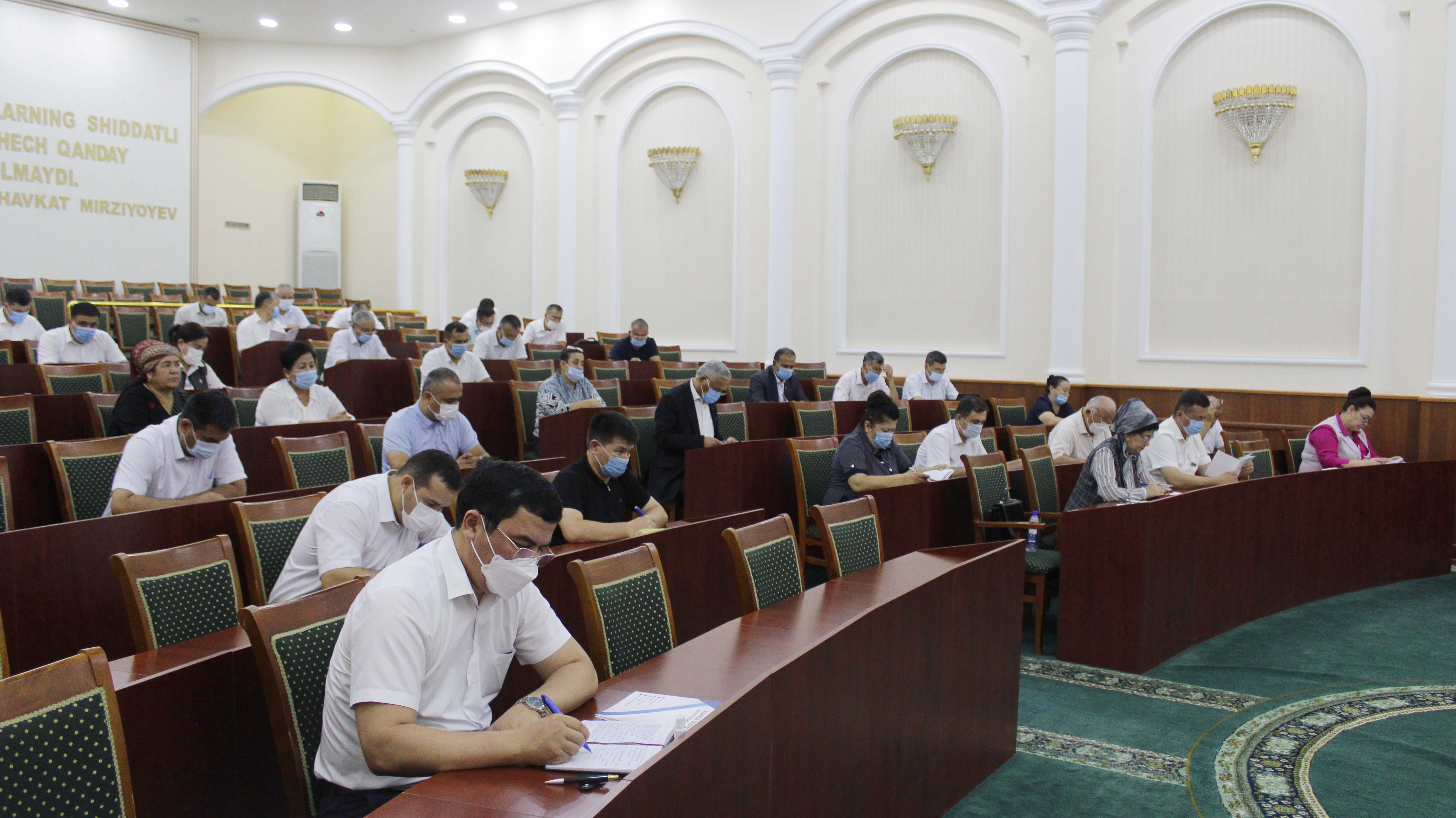 Айни дамда халқ депутатлари Хоразм вилояти Кенгашининг ўттиз тўртинчи сессияси давом этмоқда. Сессия кун тартибига вилоятда ҳуқуқбузарликлар профилактикаси ва жиноятчиликка қарши кураш, маҳаллий бюджет даромадларининг бажарилиши,ёшлар билан ишлаш бўйича беш муҳим ташаббус доирасида амалга оширилган ишлар, 2021йилнинг 2-ярмида секторлар ҳудудини комплекс ижтимоий-иқтисодий ривожлантиришнинг “Йўл харитаси”ни тасдиқлаш каби бир қатор масалалар киритилган.
