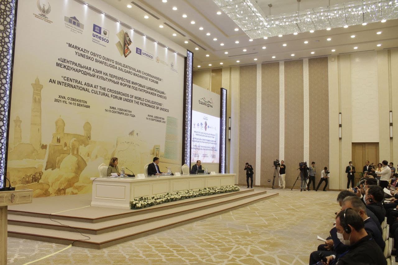 Давлатимиз раҳбари БМТ Бош Ассамблеясининг 75-сессиясида сўзлаган нутқида ЮНЕСКО билан ҳамкорликда 2021 йилда Хива шаҳрида «Марказий Осиё жаҳон цивилизациялари чорраҳасида» мавзусида халқаро форум ўтказиш ташаббусини илгари сурган эди. Бугун ушбу халқаро форум Хива шаҳрида янги барпо этилган “Фаровон” меҳмонхонасида ўз ишини бошлади. Ўзбекистон Республикаси Бош вазирининг ўринбосари Азиз Абдуҳакимов мамлакатимиз Президенти Шавкат Мирзиёевнинг форум иштирокчиларига табригини ўқиб эшиттирди.