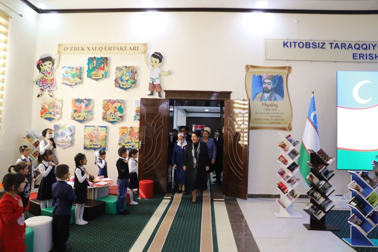 Ташрифнинг навбатдаги манзили Янгибозор туманидаги “Очақалъа” маҳалласи гузари фаолияти билан танишиш ҳамда “Аёллар маслаҳат кенгаши” аъзолари ва фаол хотин-қизлар билан учрашувдан иборат бўлди. Сенат Раиси туман маънавият ва маърифат марказининг янги кутубхонаси очилиши тадбирида иштирок этди.