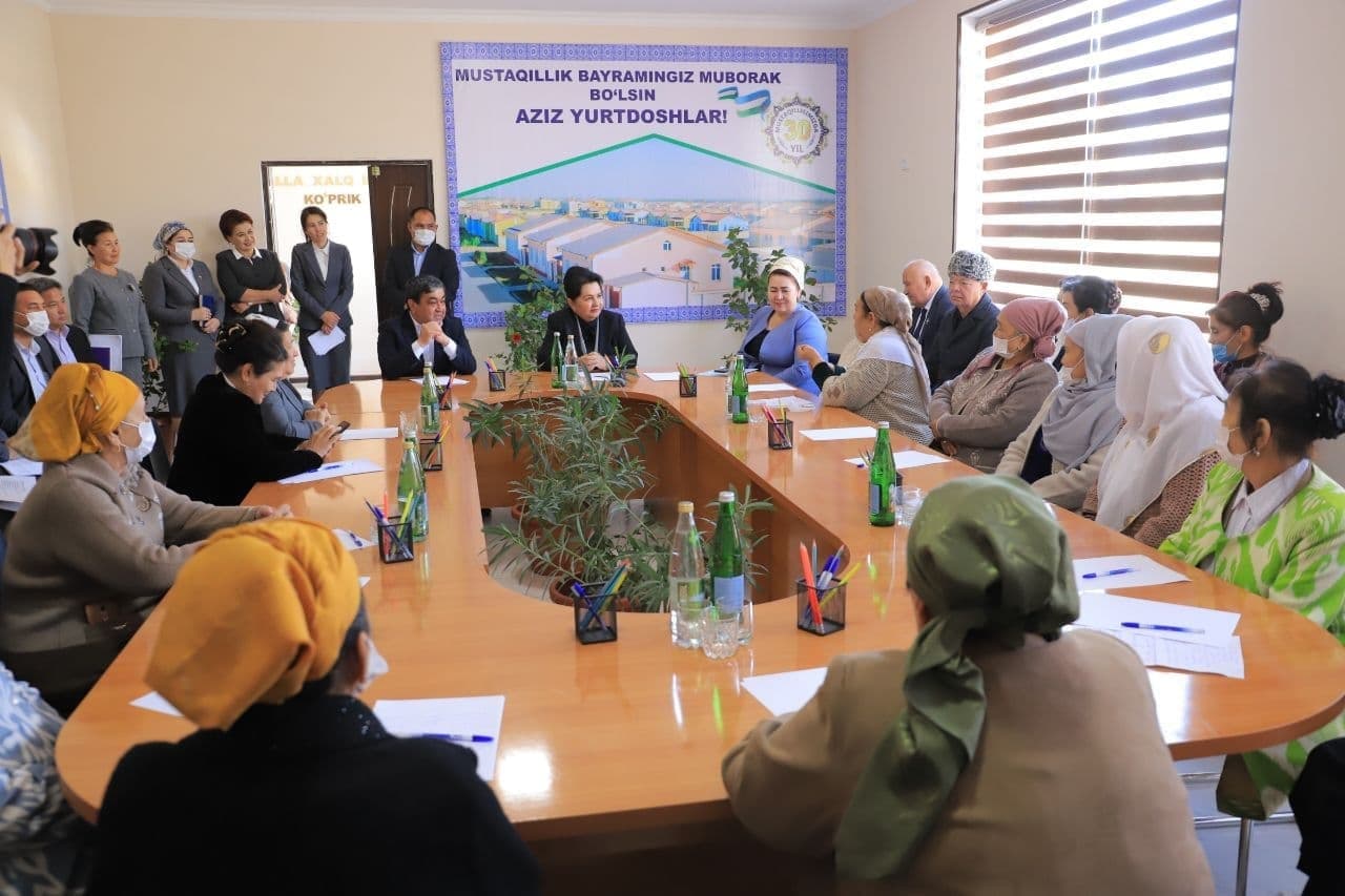 Сенат Раиси Урганч туманидаги “Улли ҳовли” мажмуасида “Туркманлар” маҳалласида истиқомат қилувчи туркман аёллари ва “Аёллар дафтари”га кирган хотин-қизлар билан учрашди. Мажмуада маҳалла хотин-қизлари халқ ҳунармандчилиги турлари бўйича уста-шогирд анъаналари асосида фаолият олиб борадилар. Энг муҳими ўзбек ва туркман миллати вакиллари ҳамжиҳатликда, тотувликда яшаб, меҳнат қилиб келмоқдалар.