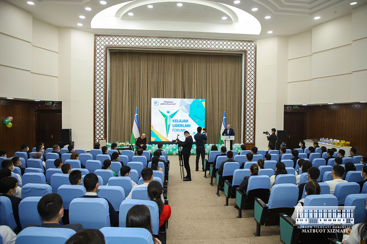 Бугун Урганч шаҳридаги Ёшлар марказида ёшларнинг ғоя ва таклифларини эшитиш ҳамда муҳокама қилиш учун майдон яратиш, замон қаҳрамонларини кашф этиш, уларнинг илмий ва ижодий салоҳиятини рўёбга чиқариш ҳамда мамлакатдаги янгиланишларга фаол жалб қилиш мақсадида "Келажак лидерлари" форуми ўтказилди.