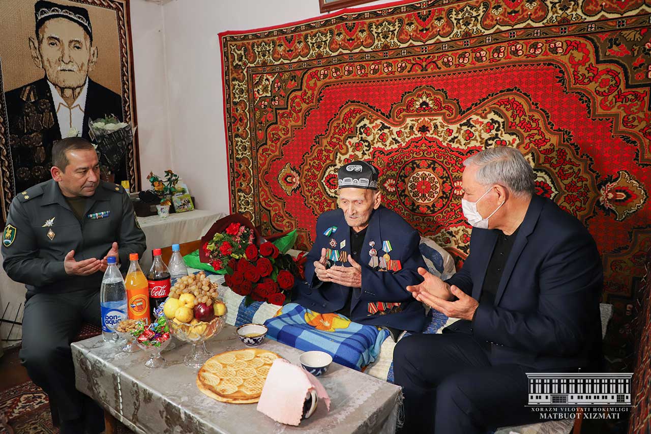 Урганч шаҳрида истиқомат қилувчи 2-жаҳон уруши қатнашчиси Жаббор бобо Қаландаров 100 ёшга тўлди. Шу муносабат билан вилоят ҳокими Фарход Эрманов жамоатчилик вакиллари билан Жаббор бобонинг хонадонида бўлиб, нуроний отахонни табаррук ёши билан самимий табриклади.