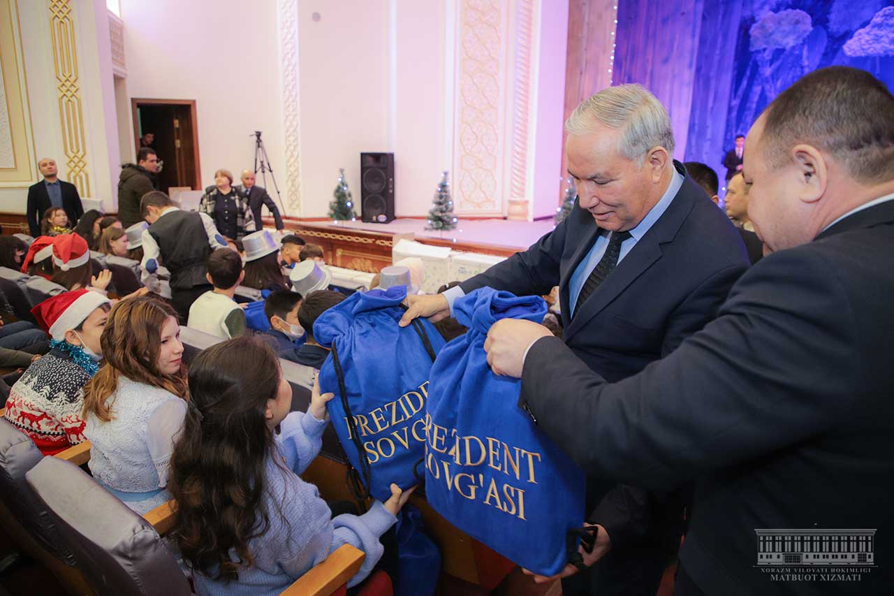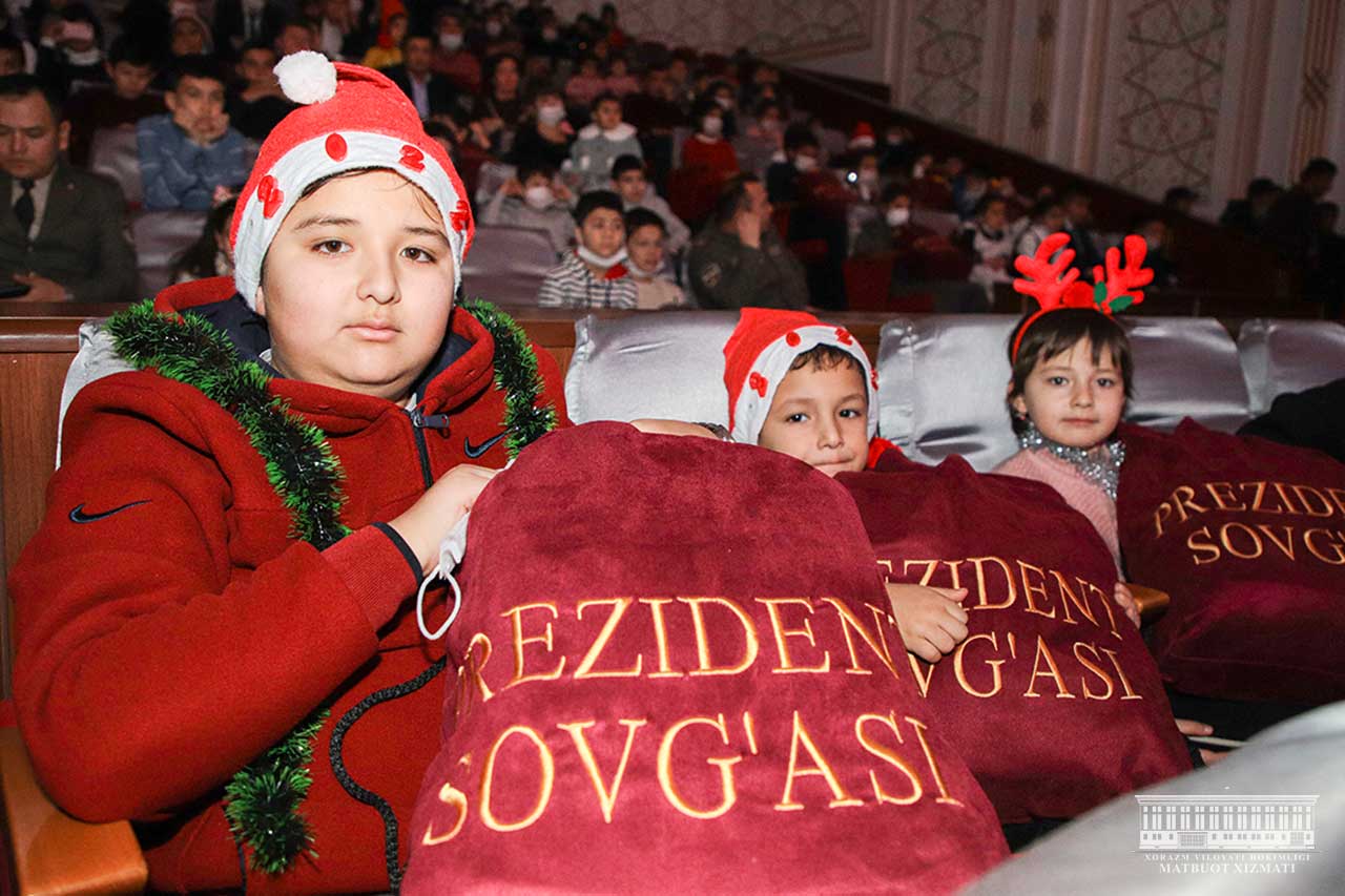 Урганч шаҳридаги вилоят мусиқали драма театрида анъанавий “Президент арчаси” тадбири бўлиб ўтди. Байрам тадбирига вилоятимиз шаҳар ва туманларидан чин етим ва ота-она қаромоғидан маҳрум бўлган, ота-оналари ватанни ҳимоя қилиш йўлида қурбон бўлган болалар, оилавий болалар уйлари тарбияланувчилари таклиф этилди.