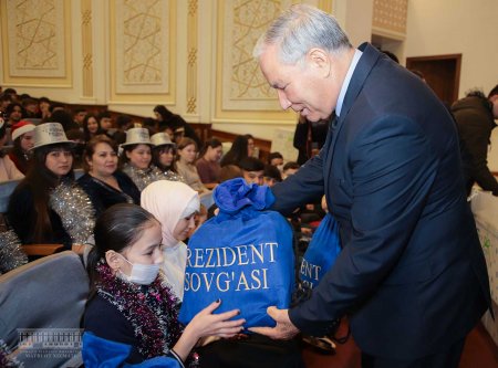 Вилоят ҳокими Фарход Эрманов болажонларни Янги йил байрами билан табриклаб, уларга Президент совғаларини топширди. Совға жамланмасидан ширинликлар, ўқув қуроллари ва болалар энциклопедиясидан иборат 21 турдаги совға, шунингдек, оилавий болалар уйлари ҳамда SOS болалар маҳалласининг 12 ёшдан катта бўлган тарбияланувчи учун замонавий планшет ҳам ўрин олган.