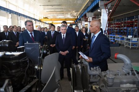 Тожикистон раҳбари Эмомали Раҳмон Президент Шавкат Мирзиёев ҳамроҳлигида Урганч шаҳридаги «UzXCMG» қўшма корхонасига ташриф буюрди.