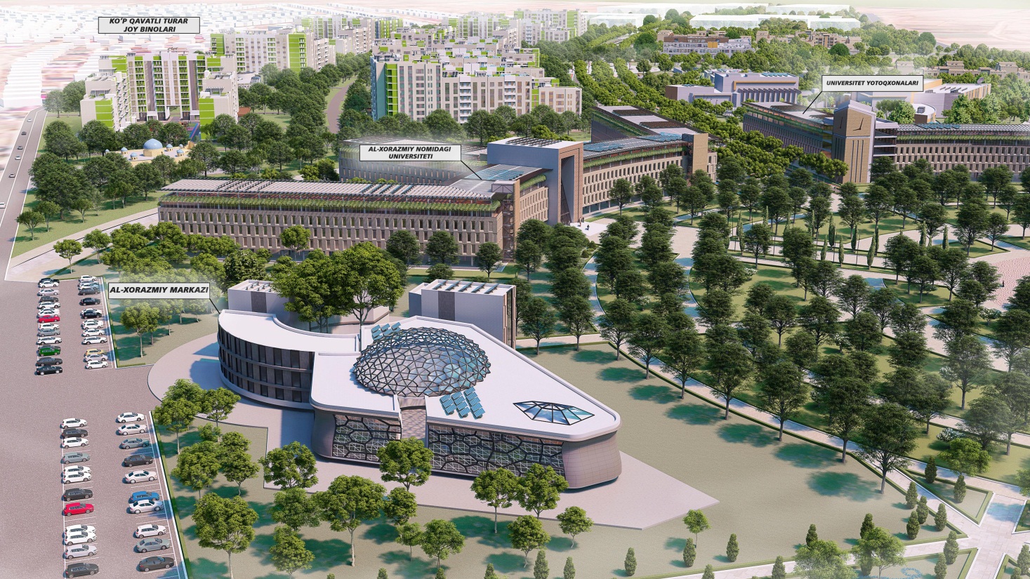 Лойиҳа бўйича мажмуада буюк аллома, алгоритм асосчиси ал –Хоразмийнинг баландлиги 30,5 метрлик муҳташам ҳайкали қад ростлайди. Янги массивда ал-Хоразмий номидаги университет ва талабалар ётоқхоналари, 3000 ўринли мактаб ва 1500 ўринли мактабгача таълим муассасаси, IT-парк, инновация маркази, спорт мажмуаси, илмий-тадқиқот маркази, кўп қаватли уйлар ва автотураргоҳлар, марказий аллея – “Янги Ўзбекистон” боғи барпо этилади. Шунингдек, хорижий инвестицияларни жалб қилган ҳолда технопарк ва замонавий тўқимачилик корхоналари қурилиб, ишга туширилади.