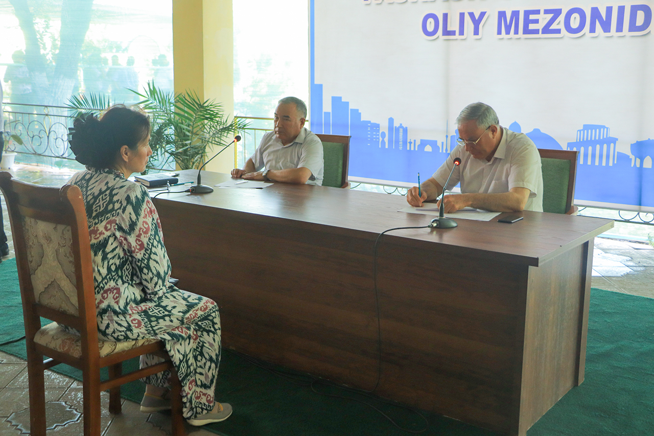 Унда вилоят ва туман ташкилотлари раҳбарлари, Халқ қабулхонаси вакиллари иштирок этдилар. Қабул давомида фуқаролар уй-жой, моддий ёрдам, имтиёзли кредит олиш, даволаниш, ички йўлларни таъмирлаш каби қатор масалалар бўйича мурожаат қилдилар. Мурожаатларинг бир қисми жойида ҳал қилинди, ечими муайян вақт ва ўрганишни талаб қиладиган масалалар бўйича масъул раҳбарларга топшириқлар берилиб, ижроси назоратга олинди.