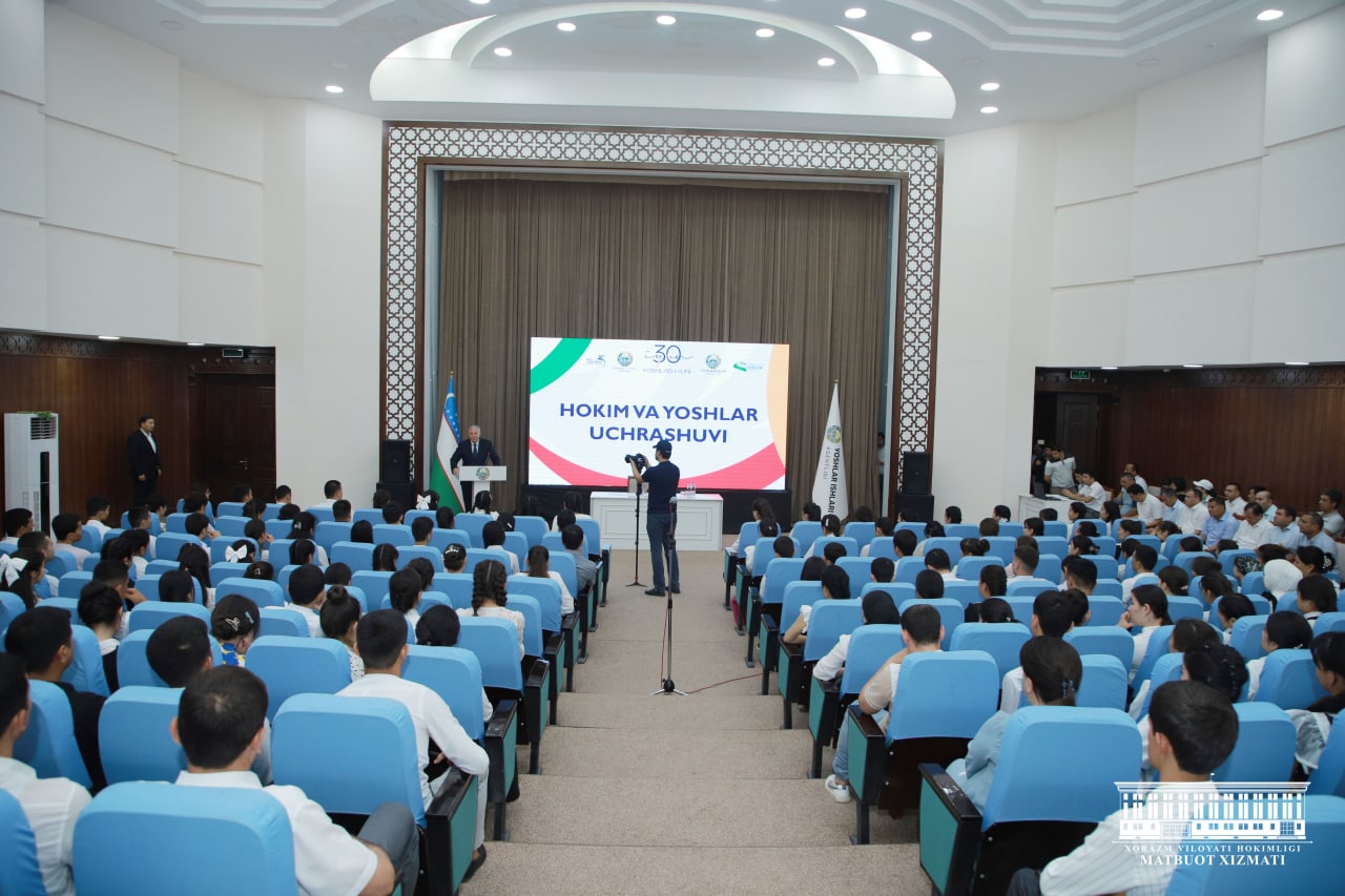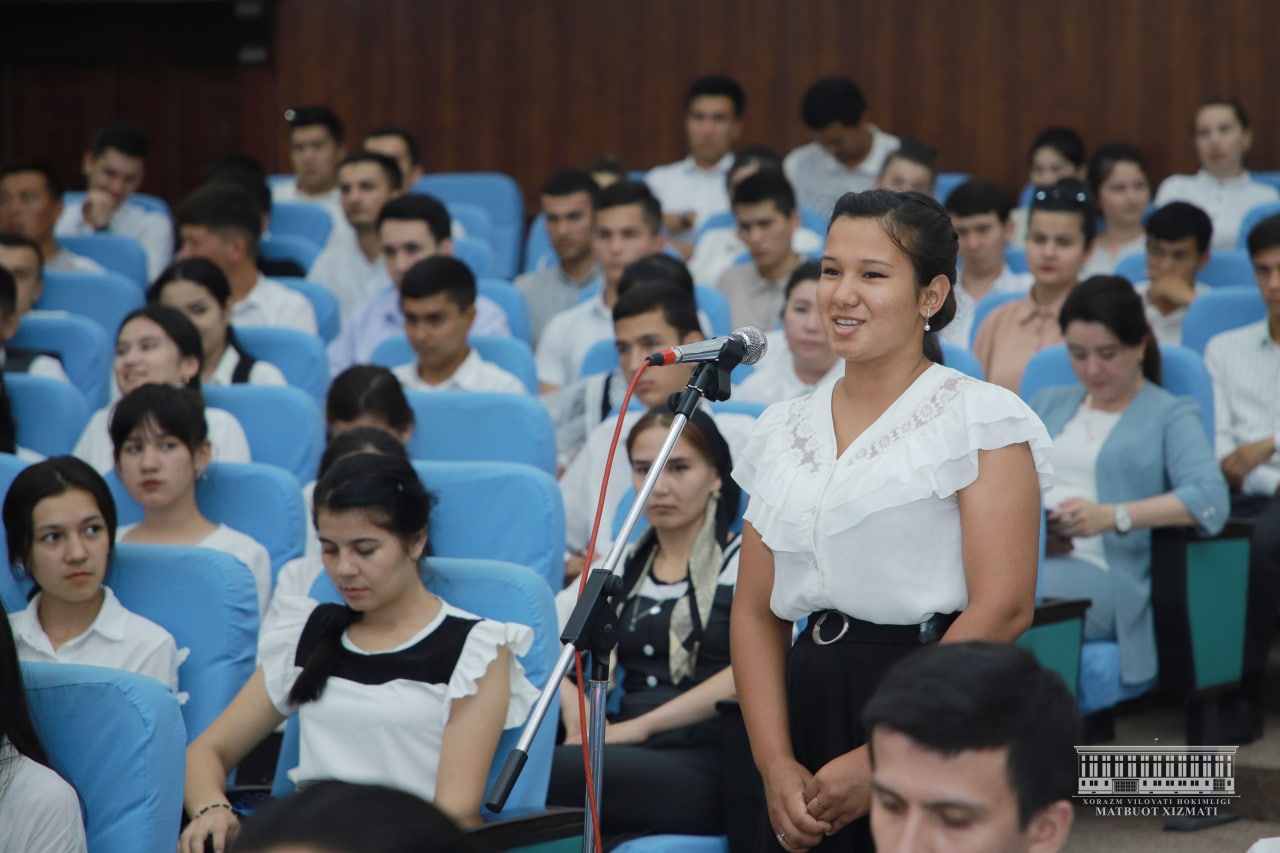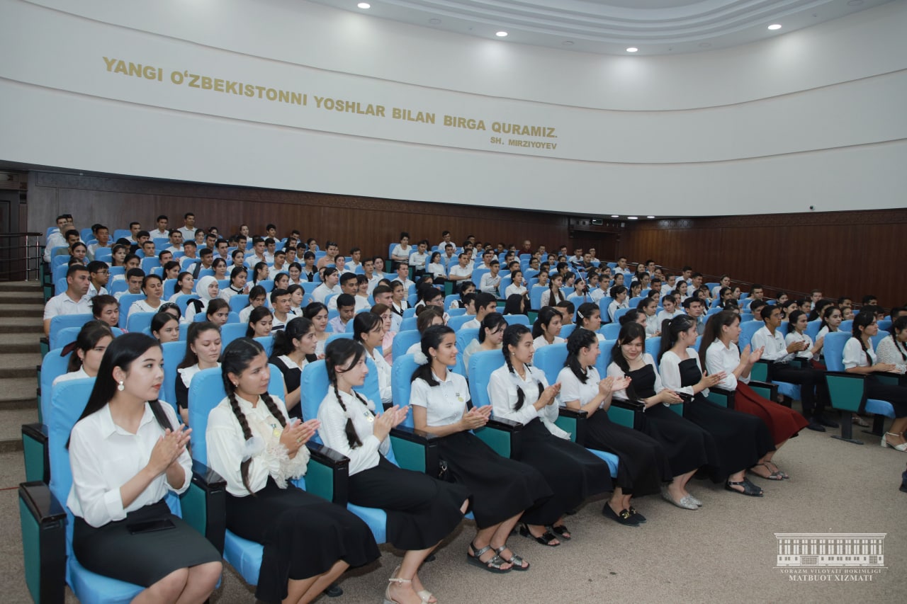 Бугун вилоят ҳокими Фарход Эрманов Урганч шаҳридаги “Ёшлар маркази”да битирувчилар билан учрашди. Жорий ўқув йилида вилоятимизда умумтаълим мактабларини 22 минг 958 нафар , академик лицейлар ва ўрта махсус таълим муассасаларини 8 минг 912 нафар ҳамда олий таълим муассасаларини 5 минг 966 нафар ёшлар муваффақиятли якунлади. Мазкур ёшларнинг 22 минг 671 нафари ёки 59,8 фоизи меҳнат бозорига кириб келиши кутилмоқда.