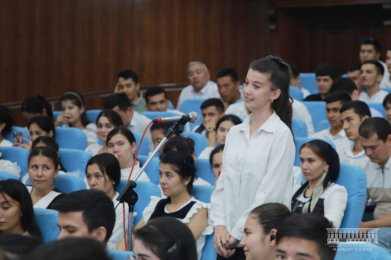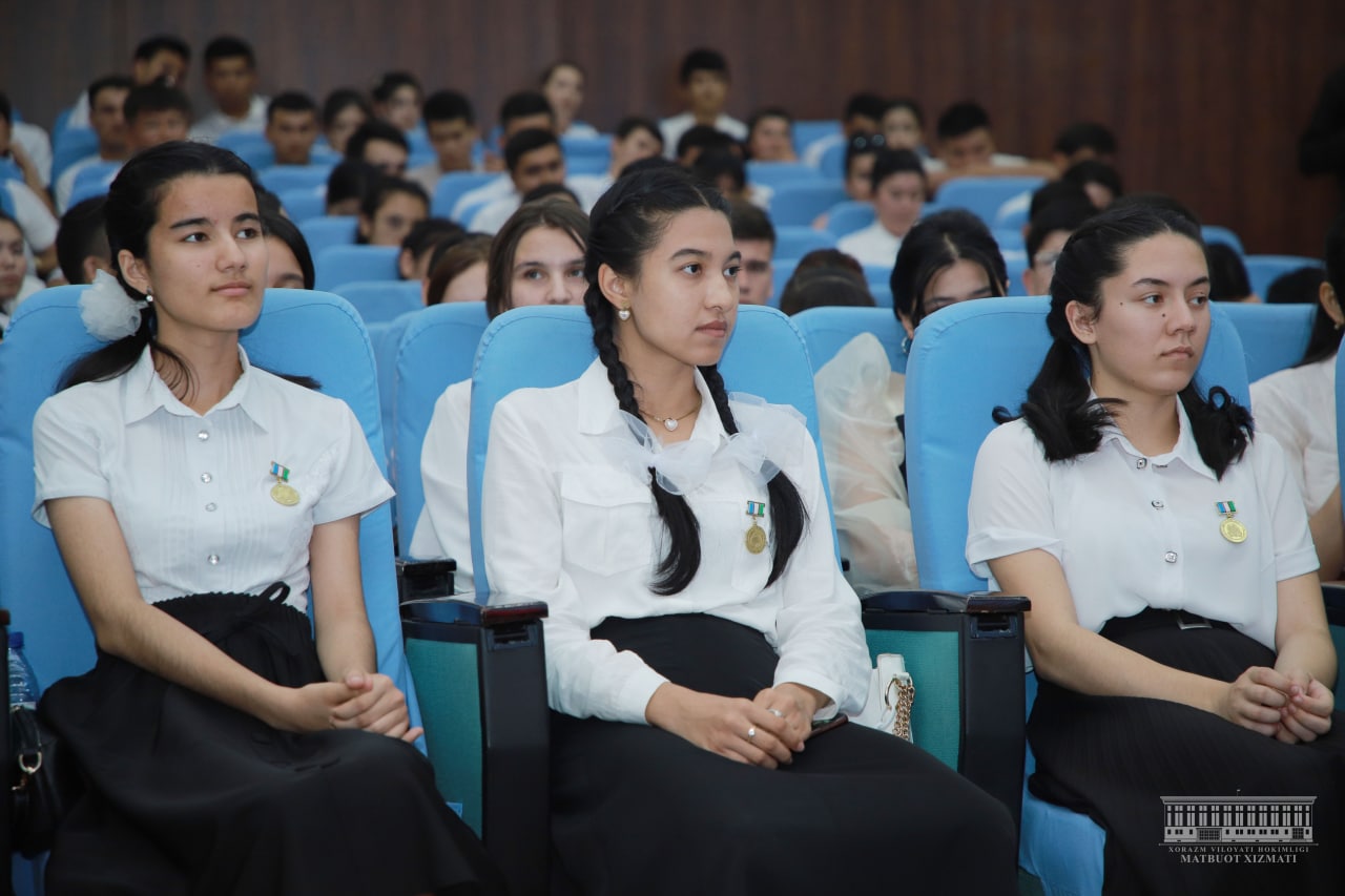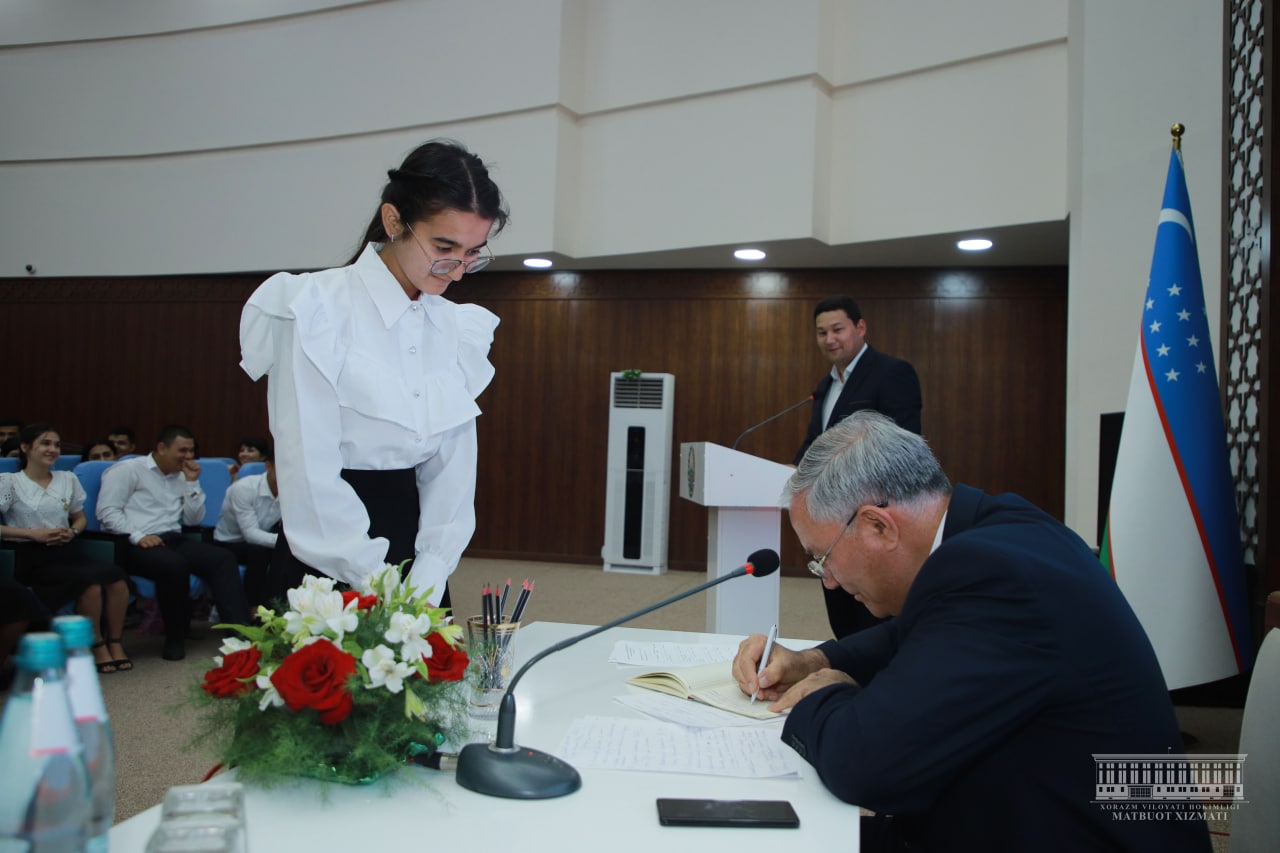 Бугун вилоят ҳокими Фарход Эрманов Урганч шаҳридаги “Ёшлар маркази”да битирувчилар билан учрашди. Жорий ўқув йилида вилоятимизда умумтаълим мактабларини 22 минг 958 нафар , академик лицейлар ва ўрта махсус таълим муассасаларини 8 минг 912 нафар ҳамда олий таълим муассасаларини 5 минг 966 нафар ёшлар муваффақиятли якунлади. Мазкур ёшларнинг 22 минг 671 нафари ёки 59,8 фоизи меҳнат бозорига кириб келиши кутилмоқда.