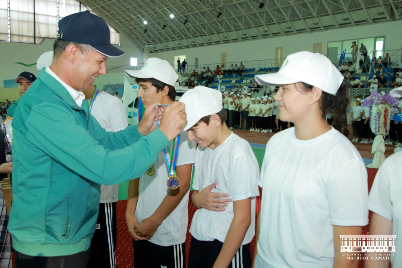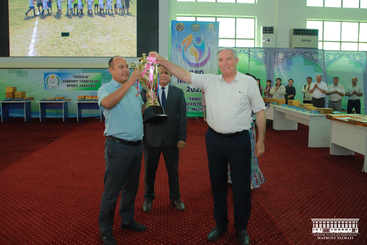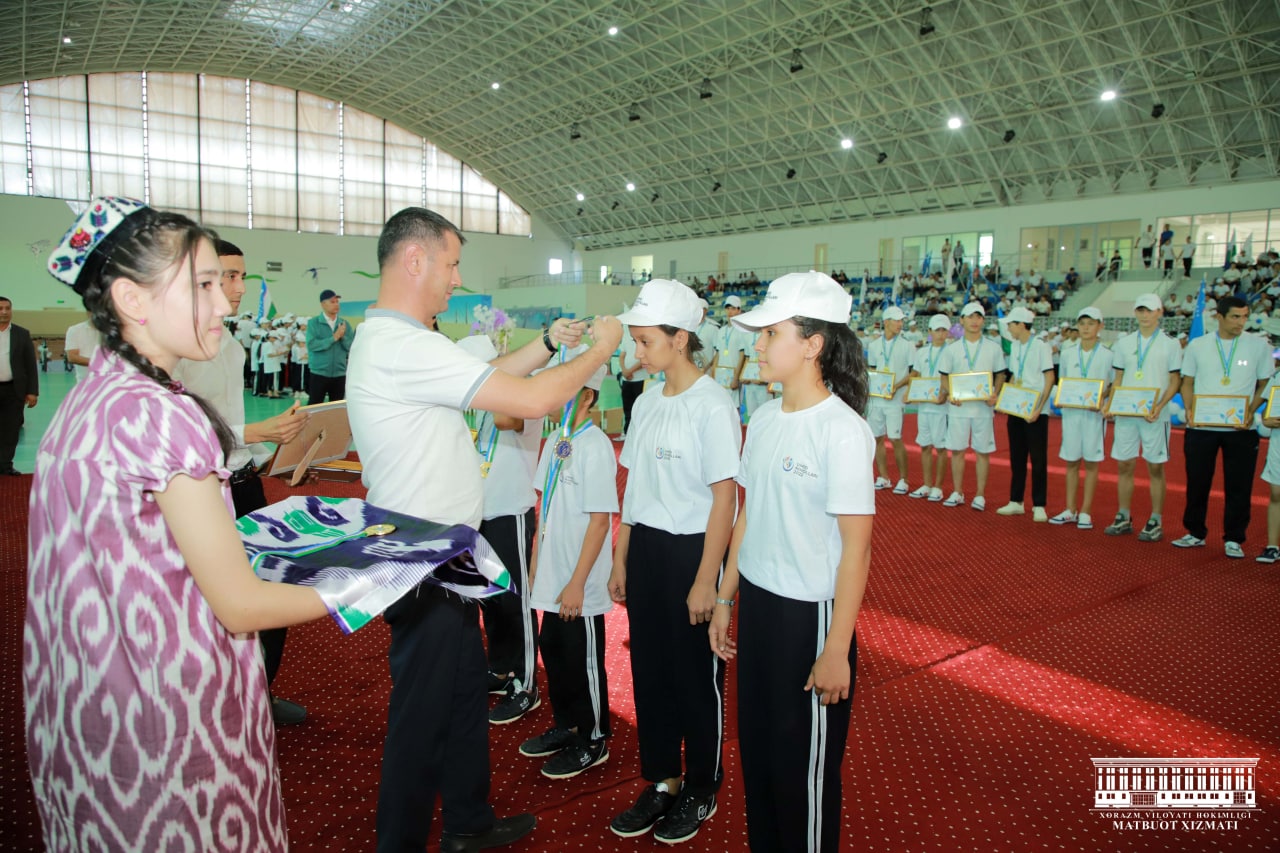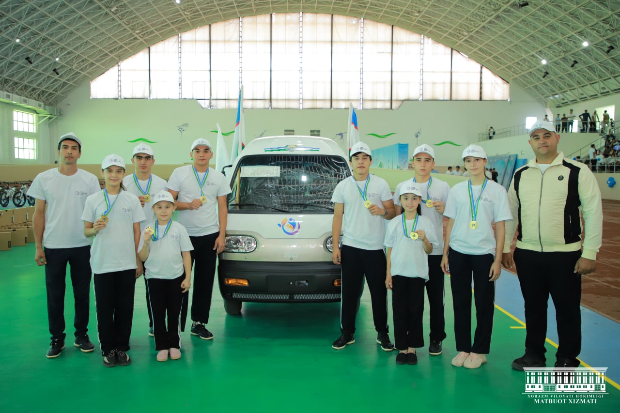 Вилоят ҳокими Фарход Эрманов умидли ёш спортчиларни эришган ғалабалари билан табриклаб умумжамоа ҳисобида биринчи ўринни эгаллаган Урганч шаҳри жамоасига бош соврин – “Дамас” автомобилини тантанали равишда топширди. Шунингдек, мусобақа ғолибларига 166 дона ноутбук, 166 дона смарт телевизор, 177 дона велосипед ва 51 дона спорт кийимлари тўплами топширилди.