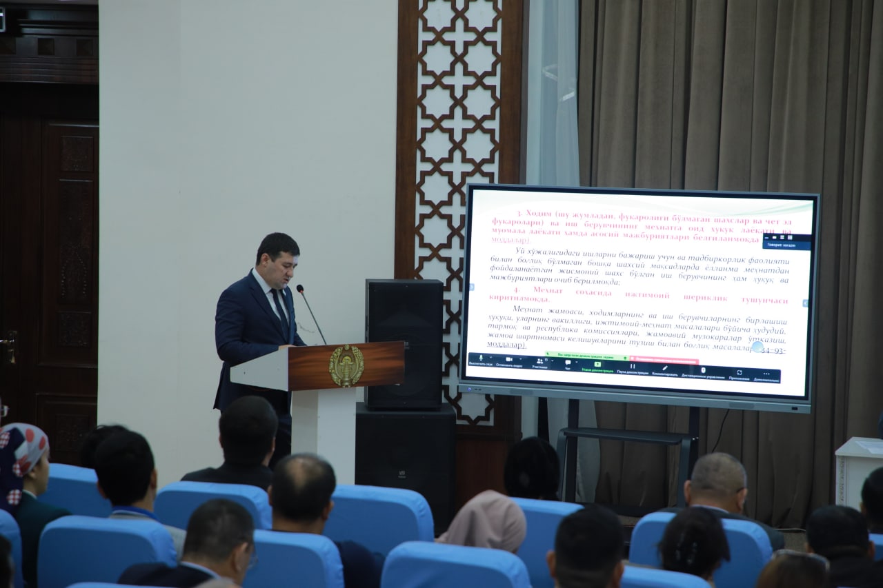 Урганч шаҳрида янги таҳрирдаги Меҳнат кодексининг мазмун моҳиятини кенг оммага етказиш масалаларига бағишланган семинар ташкил қилинди.