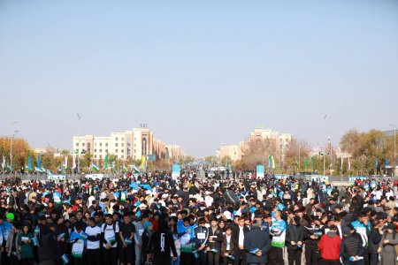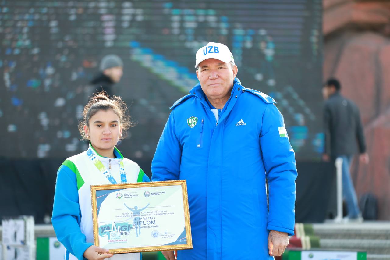 Бугун мамлакатимизнинг 15 та шаҳрида, жумладан Урганчда 18 ноябрь- Ўзбекистон Республикасининг давлат байроғи қабул қилинган санага бағишлаб "Бир ватанда, бир вақтда, бир масофага, бир мақсадда - бирга югурамиз" шиори остида "Янги нафас" спорт мусобақаси ўтказилди.
