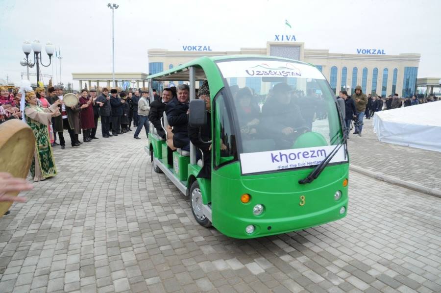 Тадбирда меҳмонлар замонавий вокзалда яратилган шароитлар билан танишди. Маълумки, Президентимиз ташаббуси билан Урганчдан Хива шаҳригача 30 километрдан зиёд янги темир йўл линияси тортилди. Хива шаҳрида замонавий вокзал барпо этилди. Вокзал биносининг ташқи қиёфаси Хоразм меъморчилиги намуналарини ўзида акс эттирган. Замонавий VIP-зал, она ва бола, тиббиёт хоналарида барча қулайликлар яратилган. Шунингдек, вокзалда 35 нафар ишчи бир вақтнинг ўзида 200 йўловчига хизмат кўрсатади, 20 ўринли меҳмонхона юртдошларимиз ва хорижлик сайёҳларга қўшимча қулайлик бўлади.