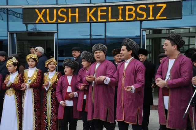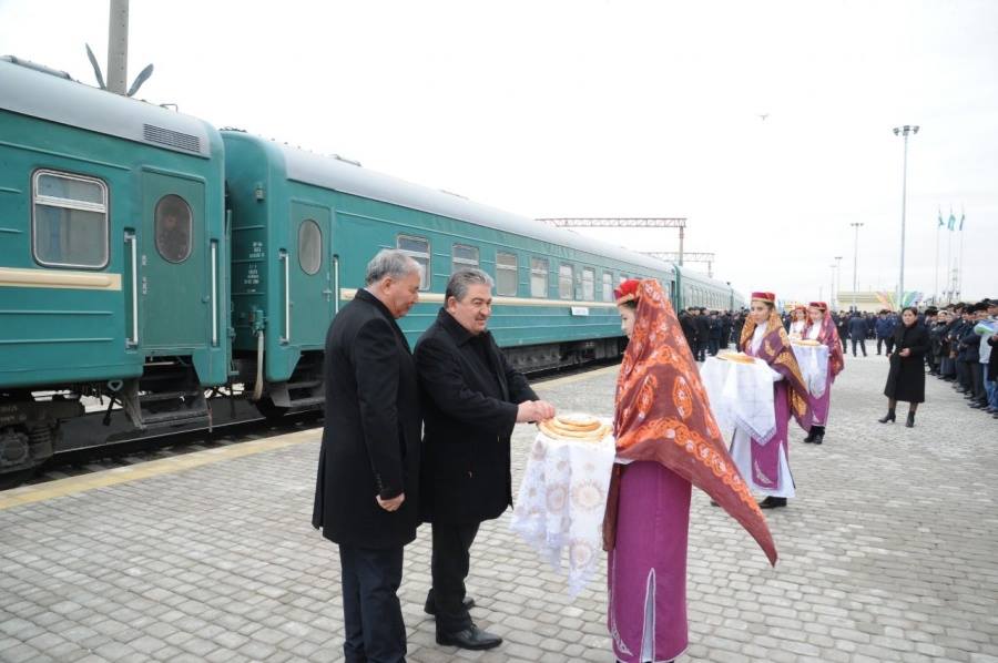 Поезднинг дастлабки йўловчиларини Хоразм вилояти ҳокимлиги, давлат ва жамоат ташкилотлари вакиллари, нуронийлар, ёшлар тантанали кутиб олди.
