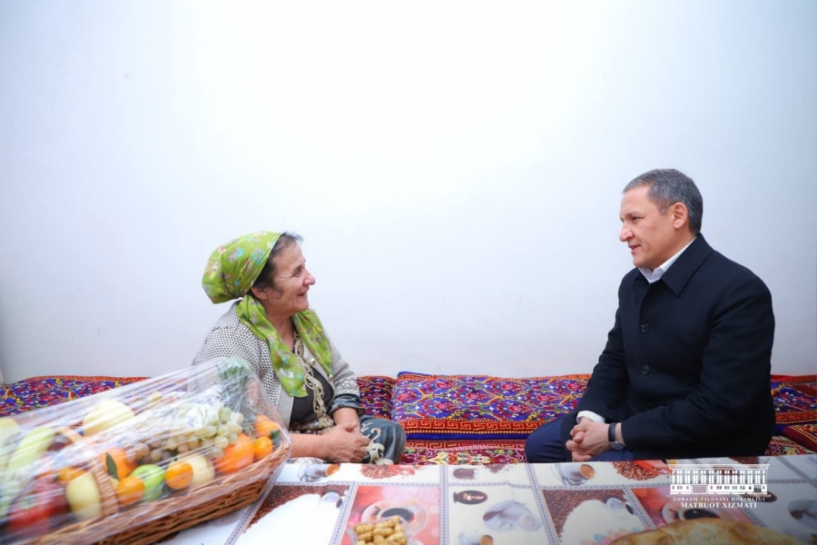 Вилоят ҳокими Жўрабек Рахимов 100 ёшдан ошган бир гуруҳ табаррук онахонларнинг хонадонларида бўлиб, уларни Янги йил байрами билан табриклади