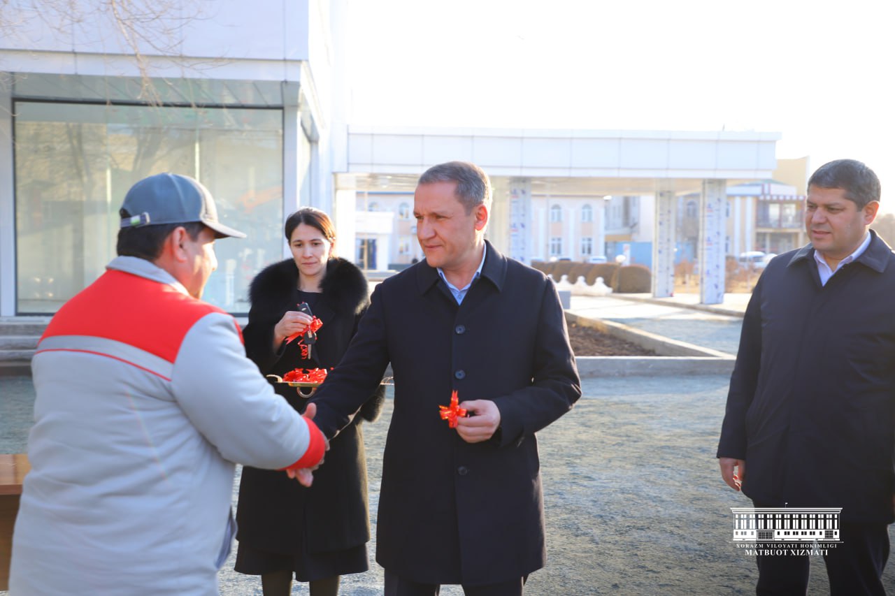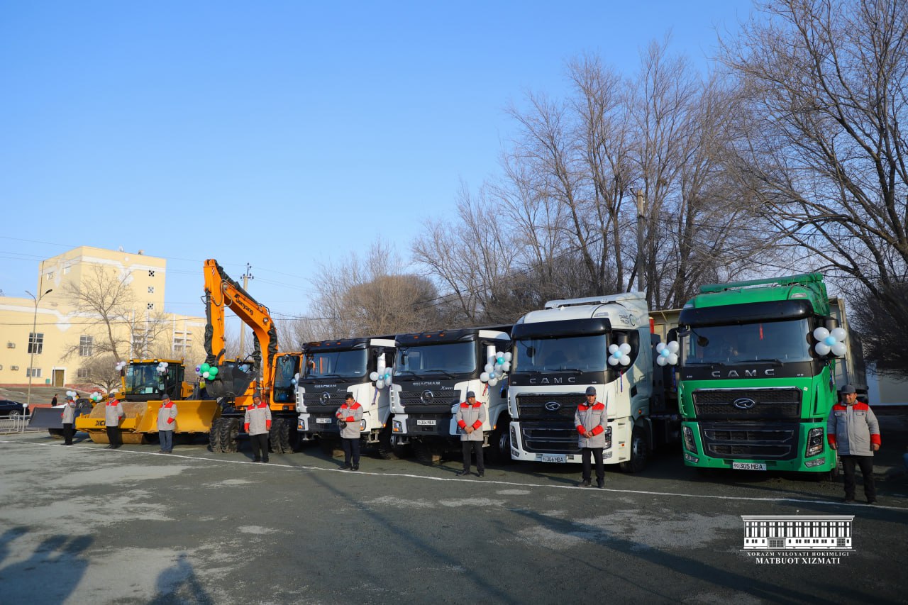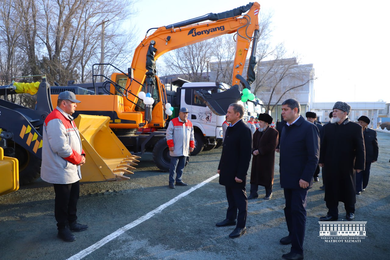 Вилоят ҳокими Жўрабек Рахимов Боғот тумани ободонлаштириш бошқармасига йўл қурилиши соҳасида ишлатиладиган, умумий қиймати 7 миллиард сўмдан ортиқ бўлган йирик ҳажмли юк автомобиллари, экскаватор, грейдер, юкловчи ва зичловчи техника воситаларини топширди.