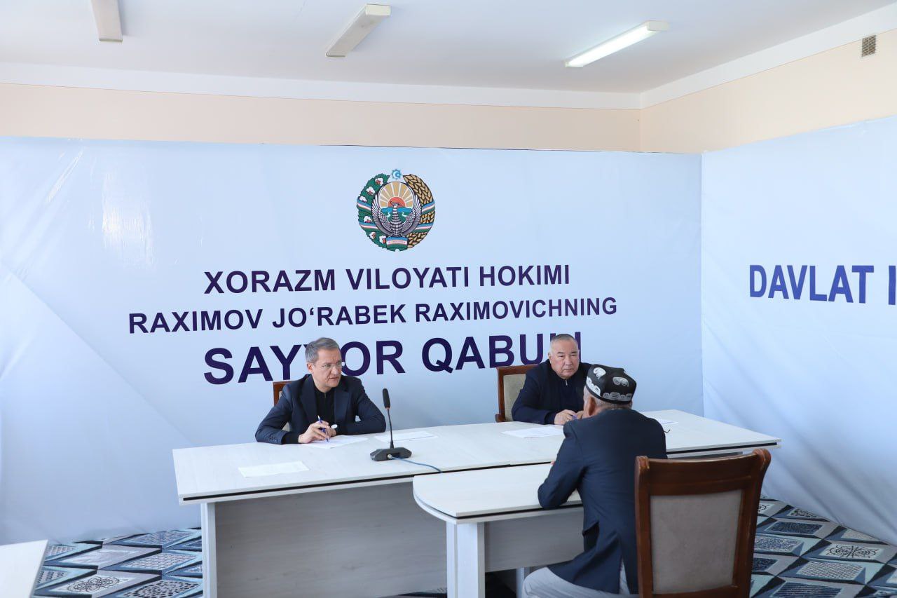 Боғот туманидаги 14-сонли болалар мусиқа ва санъат мактаби биносида вилоят ҳокими Жўрабек Рахимовнинг навбатдаги сайёр қабули ўтказилди. Қабул давомида фуқароларнинг ижтимоий-маиший масалалар юзасидан талаб ва таклифлари, ариза ва шикоятлари ўрганилди. Мавжуд муаммоларнинг аксарияти дахлдор идоралар, туман ва шаҳар ҳокимликлари вакиллари иштирокида ҳал этилди. Шунингдек, мулоқот давомида кўплаб фуқароларга уларни қизиқтираётган масалалар бўйича ҳуқуқий тушунтириш ва маслаҳатлар берилди.
