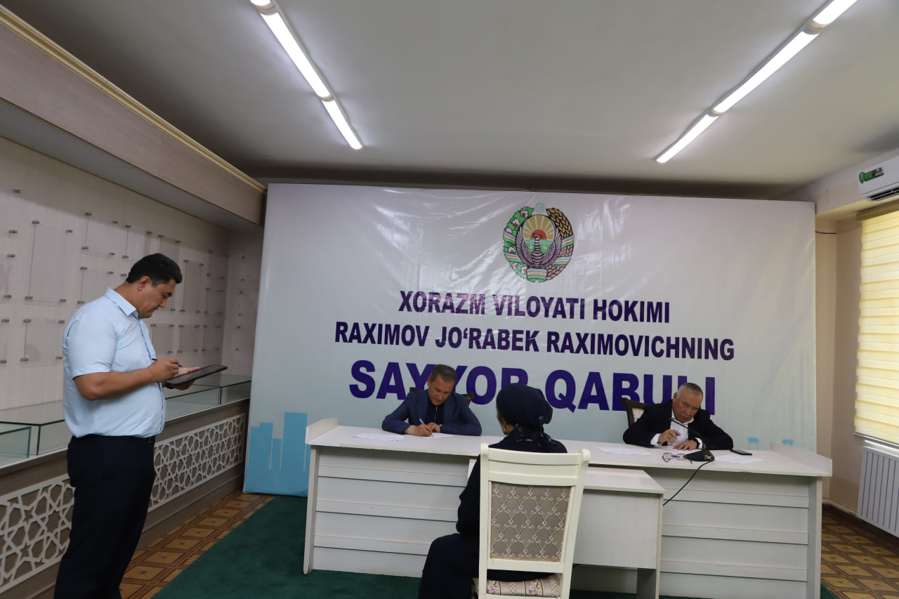 Бугун Хива шаҳридаги Хива педагогика коллежи биносида вилоят ҳокими Жўрабек Рахимовнинг навбатдаги сайёр қабули ўтказилди.