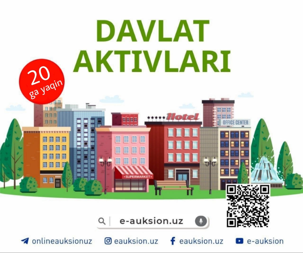“E-auksion” elektron savdo platformasi orqali savdoga chiqarilgan davlat aktivlari bo‘yicha to’lovlarni, ularning miqdoridan qat’iy nazar 5 (besh) yil ichida bo’lib-bo‘lib to’lash sharti bilan sotib oling!