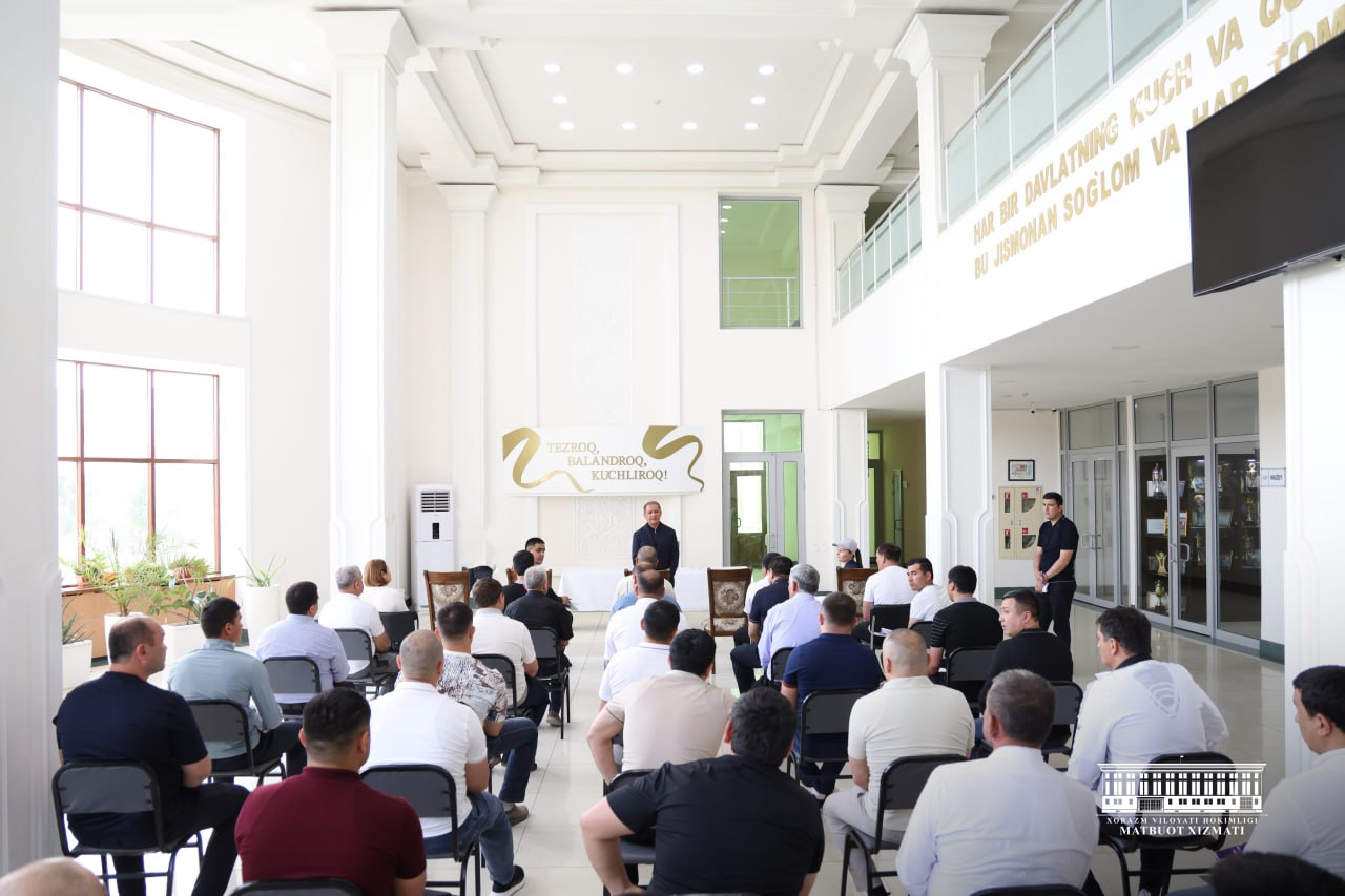 Вилоят ҳокими Жўрабек Рахимов Урганч шаҳридаги "Ёшлик" спорт мажмуасида вилоятда фаолият юритаётган спорт федерациялари раҳбарлари билан учрашди