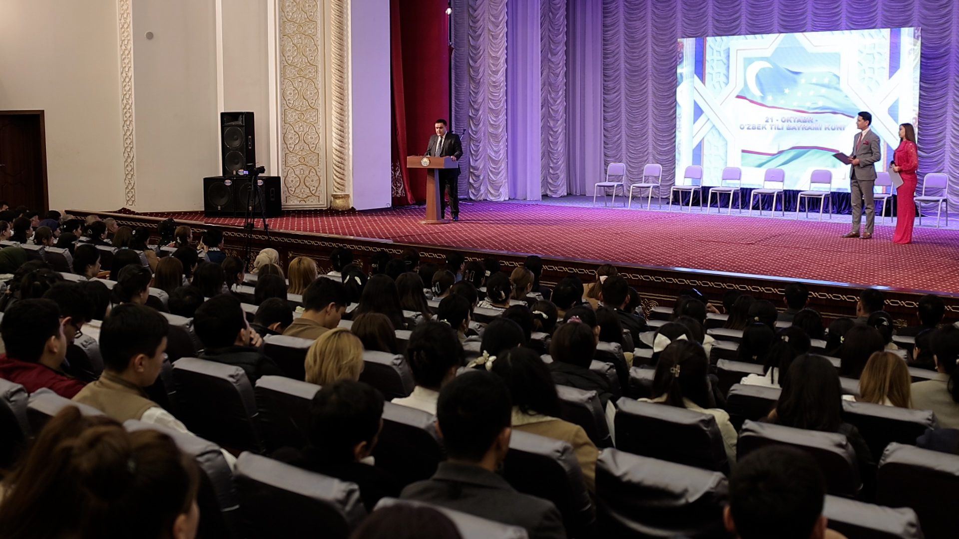 Ulkan boyligimiz va bebaho mulkimiz bo‘lgan ona tilimizga davlat tili maqomi berilgan ushbu sana munosabati bilan viloyat musiqali drama teatrida bo‘lib o‘tgan tadbirda yozuvchi va shoirlar, tilshunoslar, talaba yoshlar, keng jamoatchilik vakillari ishtirok etdilar.